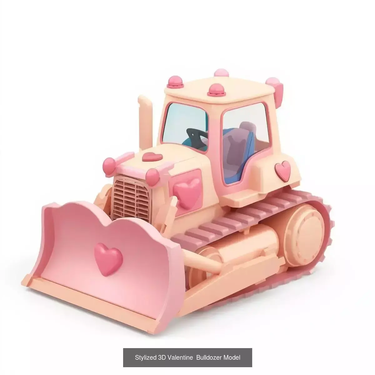 Stylized Valentine Bulldozer – Cute Construction Vehicle