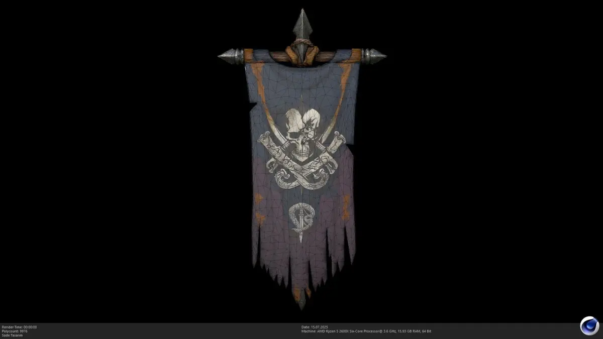 Claim your territory in the high seas or dark dungeons with this imposing Stylized Skull & Crossbones Banner 3D Model! Perfect for adding a bold, thematic element to your pirate games, fantasy adventures, or medieval scenes. This meticulously crafted banner features a distressed fabric look, a menacing skull and crossed swords emblem, and robust metallic mounting hardware.