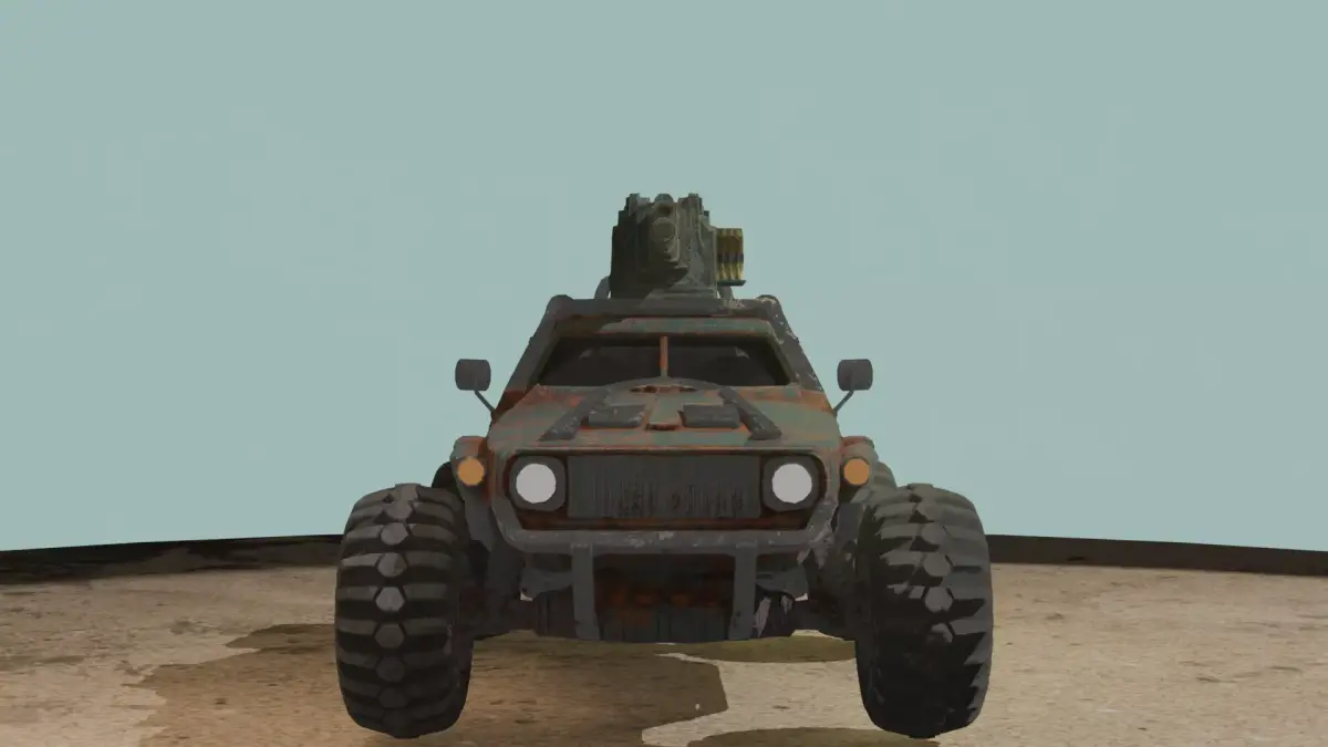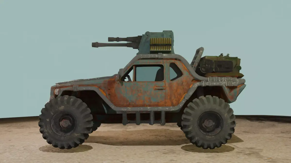 This Stylized Wasteland Battle Car is a highly detailed, game-ready asset designed for post-apocalyptic, desert, sci-fi, or stylized environments.The model includes a full exterior, interior, turret with ammo belt, detachable wheels, and separate glass meshes — all optimized and fully textured in PBR.