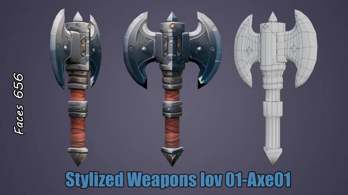 Immerse yourself in the world of fantasy with this stylized axe, this ax part of a larger weapon set https://www.cgtrader.com/3d-models/military/melee/stylized-weapons-lov-01. Item low poly count, making this perfect for use not only in mobile games and projects with limited resources, but also in MMORPGs.