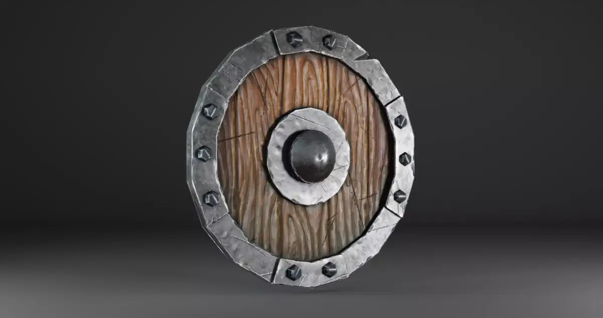 A hand-crafted stylized medieval metal shield, designed as a low-poly, game-ready prop. Perfect for fantasy, medieval, RPG, or stylized environments.