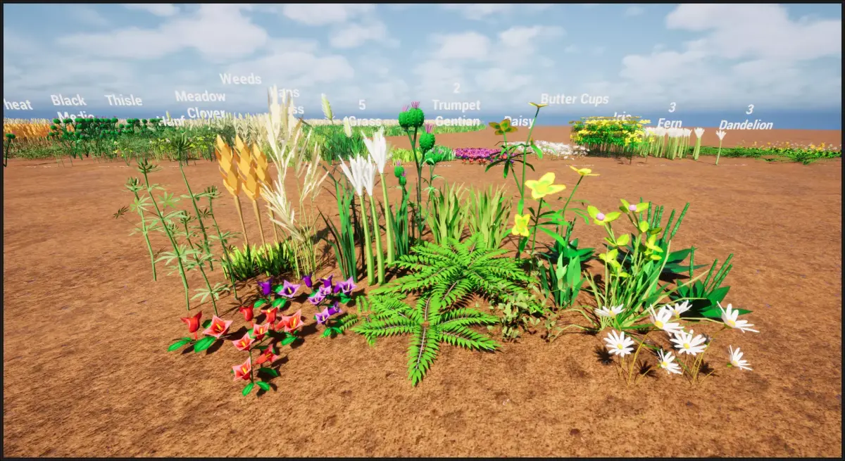 24 Unique Game Ready Nanite Stylized Plants, Weeds, Grass, Flowers pack for UE 5.6.