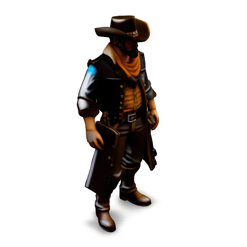 This 3D model depicts a stylized Western cowboy, ideal for game development, AR/VR experiences, and cinematic projects. Ready to be integrated into your wild west scenes. File formats include GLB, OBJ, FBX, and STL. Optimized for real-time applications with a clean topology and low-poly count. Includes high-resolution PBR textures for realistic rendering. Features intricate detailing in clothing and accessories, making it suitable for close-up shots. UV unwrapped for easy texture customization. This model is rigged and animation-ready, enhancing its versatility. Perfect for bringing the spirit of the wild west to your projects.