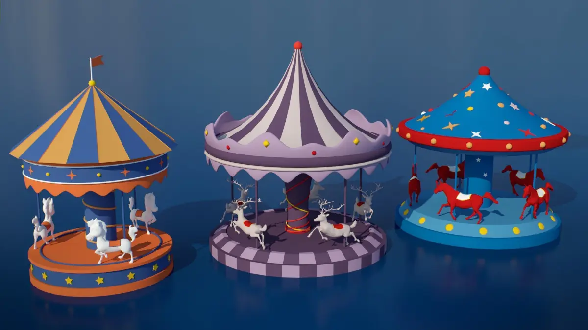Buildings: Cozy winter cottages, shops, and festive stalls adorned with snow.Winter Elements: Snow-covered pine trees, bare branches, and snow piles for a realistic winter setting.Festive Decorations: Colorful holiday lights, gifts, wreaths, and garlands for a festive atmosphere.Amusement Park Rides: Merry-go-rounds and a Ferris wheel, designed in a classic style to evoke a holiday fair.Snowmen and Characters: Playful snowmen and animal figurines to add personality to your scenes.Vehicles: Santa's sleigh and reindeer, ready for an enchanted winter journey.Format and Compatibility: All models are optimized for performance with a low-poly style, making them ideal for mobile and web applications as well as high-performance desktop games. Compatible with major 3D software and game engines.