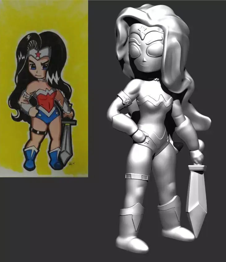 A stylized female warrior figure inspired by the one and only. Designed for collectors, painters, and display-focused 3D printing.