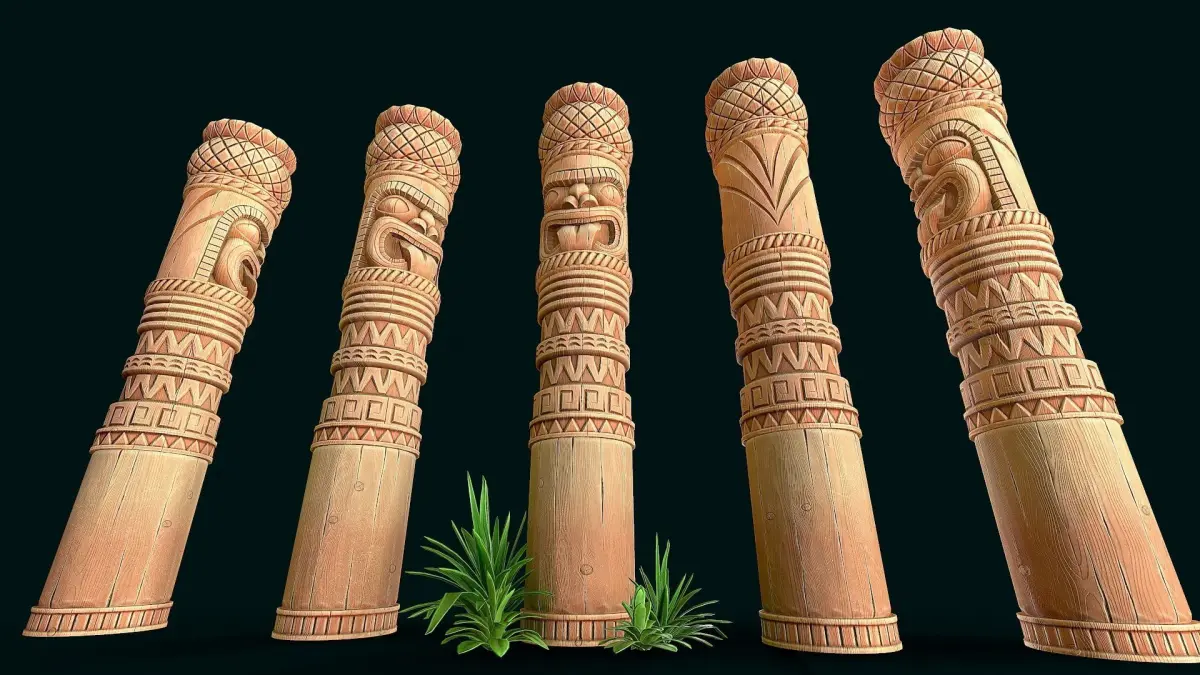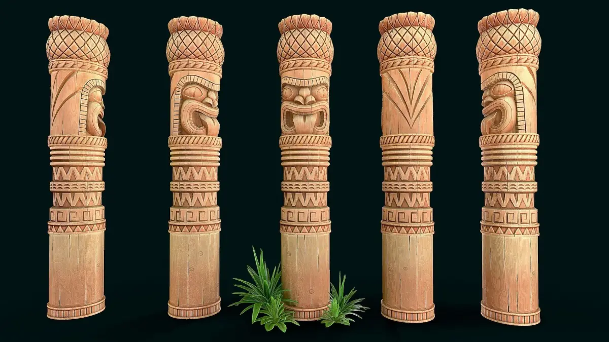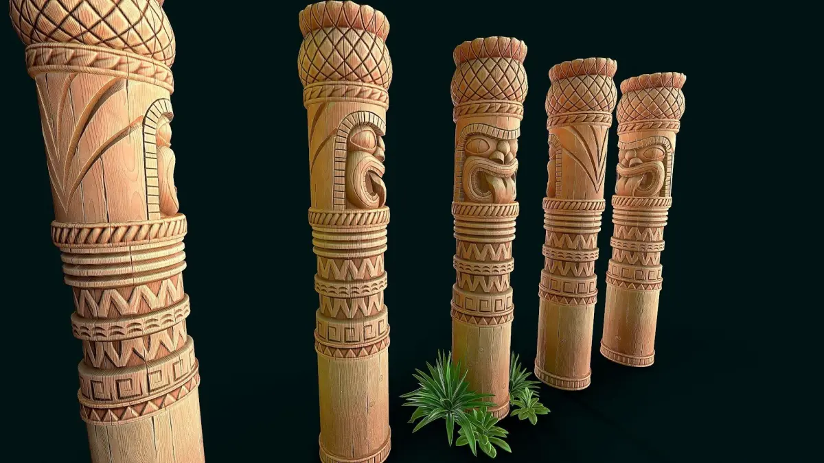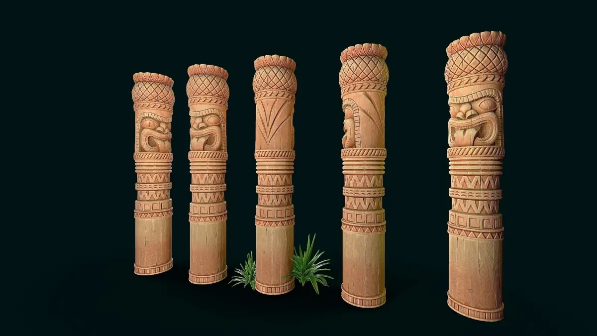 Stylized Wood Totem 10 low poly model for pbr, high quality stylized textures. 3 texture set (totem, column,decor) res. 4k(albedo,metallic, roughness,ao,normal) only totem model without grass