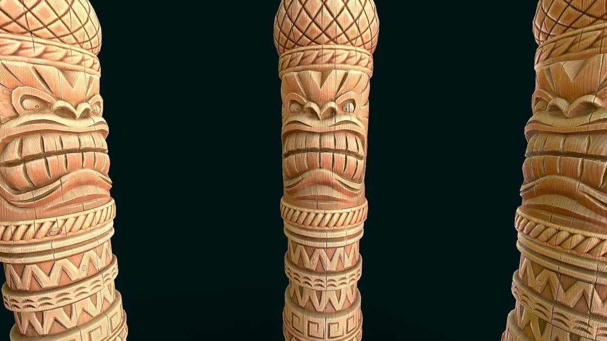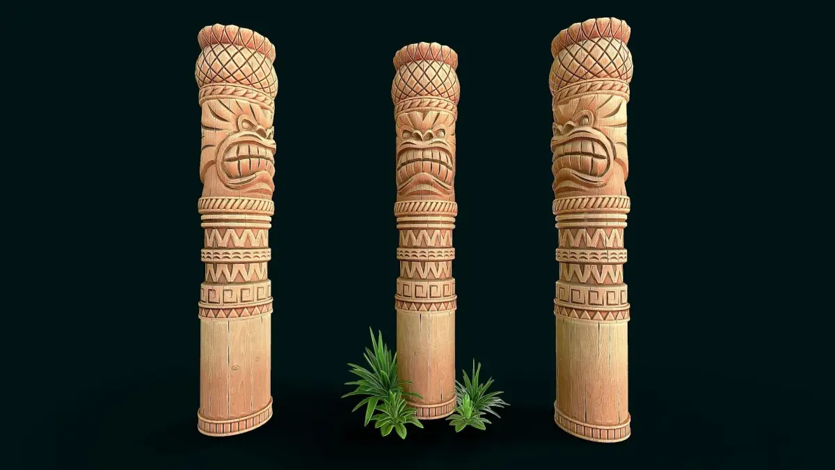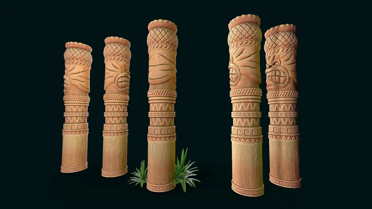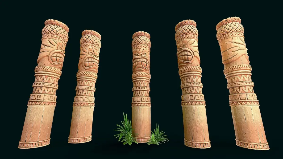 Stylized Wood Totem 11 low poly model for pbr, high quality stylized textures. 3 texture set (totem, column,decor) res. 4k(albedo,metallic, roughness,ao,normal) only totem model without grass