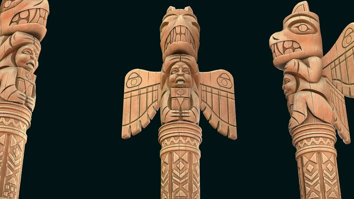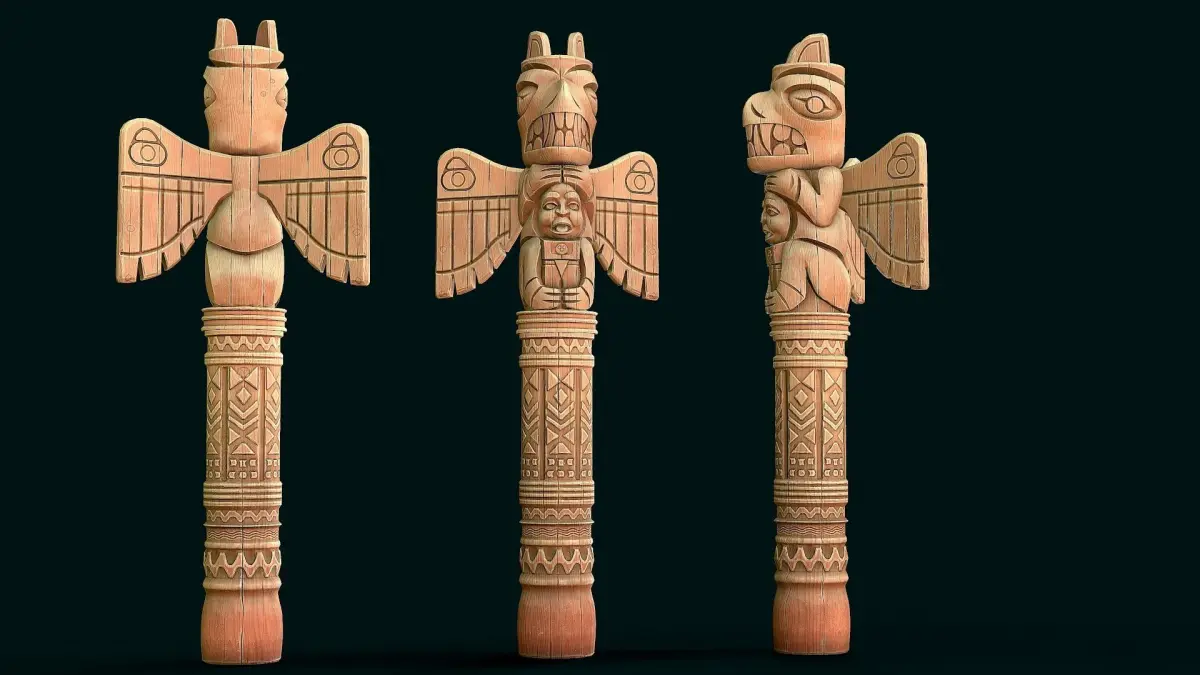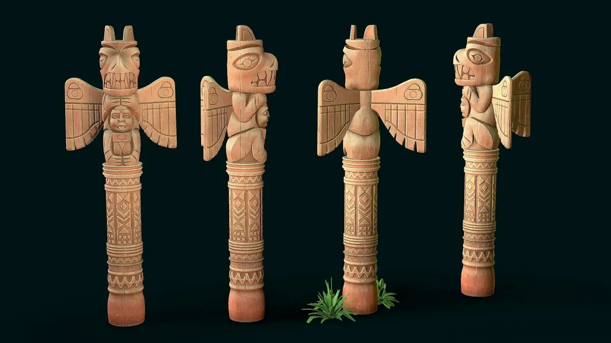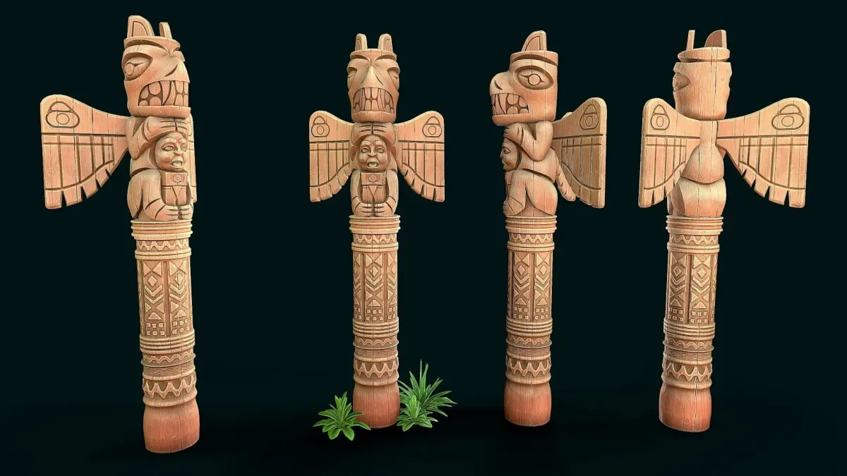 Stylized Wood Totem 7 low poly model for pbr, high quality stylized textures. 3 texture set (totem, column,wings) res. 4k(albedo,metallic, roughness,ao,normal) only totem model without grass include hi poly model, polycount 800k