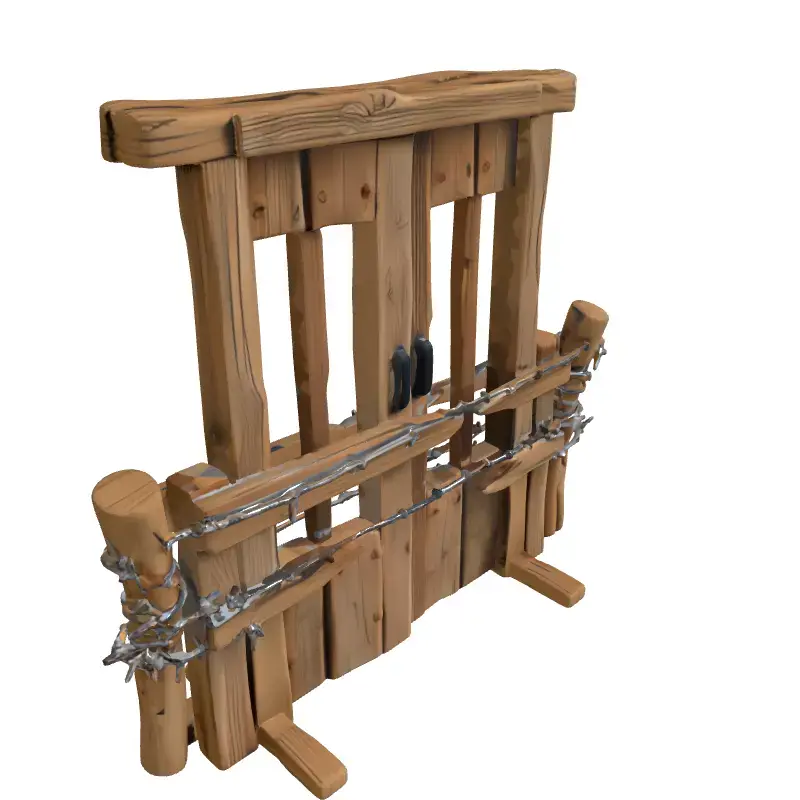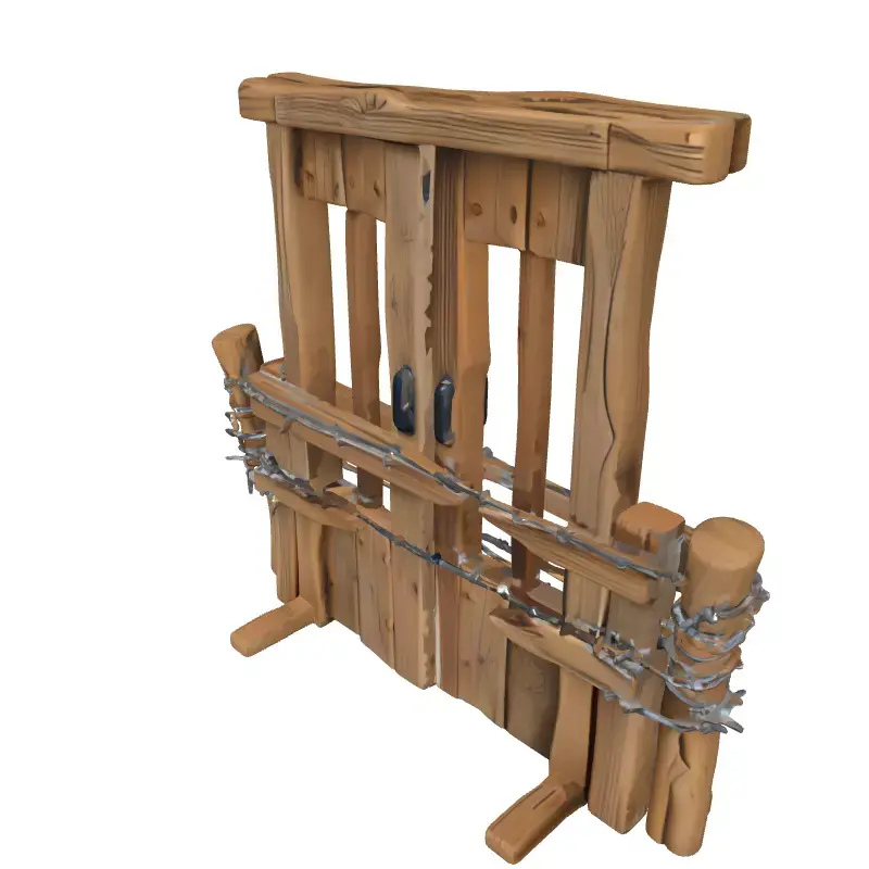 This 3D model presents a distinctive stylized wooden gate, complete with rustic planks and an intimidating barbed wire barrier. Crafted with an emphasis on visual appeal and performance, this asset is perfectly suited for a wide array of digital projects. It can serve as an engaging environmental prop in game development, from survival horror and post-apocalyptic settings to quaint farm simulations or adventure titles. Its unique aesthetic also makes it an excellent addition to augmented reality (AR) and virtual reality (VR) experiences, as well as captivating digital art compositions and animated shorts. The model features clean, optimized topology, ensuring smooth performance across various platforms and rendering engines, making it ideal for real-time applications. It is meticulously UV unwrapped, allowing for seamless application of the included PBR textures that bring out the intricate wood grain and metallic sheen of the barbed wire, adding depth and realism to the stylized look. The geometry is suitable for both low-poly requirements and potential subdivision for closer shots, maintaining visual integrity. While primarily designed for interactive environments like video games, its detailed yet stylized appearance also makes it suitable for static renderings and architectural visualizations requiring a specific rustic or worn-out theme. The model is made available in multiple industry-standard formats, including GLB, OBJ, FBX, USD, DAE, STL, ABC, and PLY, ensuring broad compatibility and ease of integration into any workflow. Whether you're building a game world, designing a virtual landscape, or creating compelling visual narratives, this stylized wooden gate provides a versatile and high-quality solution.