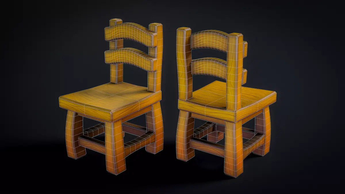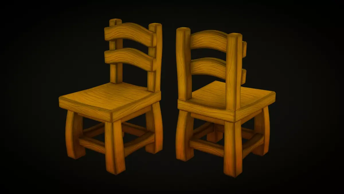Stylized Wooden Chair – Game-Ready PropA compact, hand-painted wooden chair for stylized or fantasy interiors. The mesh is clean and optimized for real-time use, with intentional UV overlaps to maximize texel density. Materials follow a standard PBR setup and drop straight into Unreal—an ORM preset is included so you can plug it in and go. Works great with UE5’s Lumen; Nanite can be enabled if desired.What you get1K texture set (plus down-res 512 and 256)Formats: PNG, TGA (Targa), SBSAR (optional, for re-exporting maps), and ORM preset for Unreal Engine (AO/Roughness/Metallic packed)Triangles: ~2,050Texel density: ~8.1 px/cm at 1024×1024UVs: single set with intentional overlaps (mirrors) for efficiencyWorkflow: PBR, Lumen-ready, Nanite-compatible (UE5)Use casesPerfect for stylized environments, medieval/fantasy interiors, mobile/indie games, VR, arch-viz with a toony look, and kitbashing furniture packs.