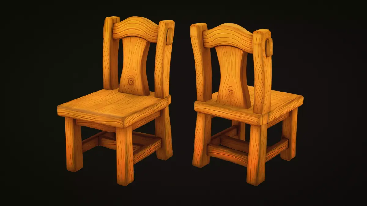 Stylized Wooden Chair – Game-Ready PropA compact, hand-painted wooden chair for stylized or fantasy interiors. The mesh is clean and optimized for real-time use, with intentional UV overlaps to maximize texel density. Materials follow a standard PBR setup and drop straight into Unreal—an ORM preset is included so you can plug it in and go. Works great with UE5’s Lumen; Nanite can be enabled if desired.What you get2K texture set (plus down-res1024 and 512)Formats: PNG, JPG, TGA (Targa), SBSAR (optional, for re-exporting maps), and ORM preset for Unreal Engine (AO/Roughness/Metallic packed)Triangles: ~1,596Texel density: ~14.3 px/cm at 2048×2048 UVs: single set with intentional overlaps (mirrors) for efficiencyWorkflow: PBR, Lumen-ready, Nanite-compatible (UE5)Use casesPerfect for stylized environments, medieval/fantasy interiors, mobile/indie games, VR, arch-viz with a toony look, and kitbashing furniture packs.