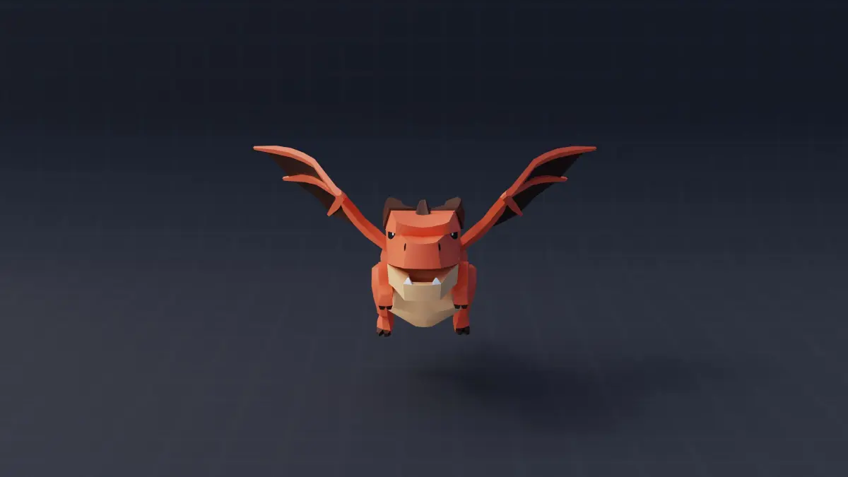 Low Poly Design: A stylized dragon with a low polygon count, making it ideal for mobile games and projects that require optimized assets.