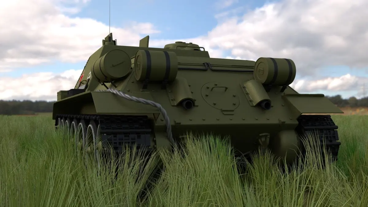 A very accurate model of a Soviet SU-100 Tank Destroyer with a HIGHLY DETAILED INTERIOR AND ENGINE BAY.