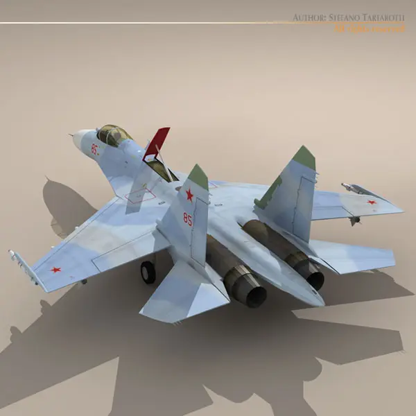 The Sukhoi Su-27 NATO reporting name: Flanker is a one-seat Mach-2 class jet fighter originally manufactured by the Soviet Union, and designed by the Sukhoi Design Bureau. It was intended as a direct competitor for the large United States fourth generation fighters, with long 3,530 km range, heavy armament, sophisticated avionics and high agility. The Su-27 most often flies air superiority missions, but is able to perform almost all combat operations. Complementing the smaller MiG-29, the Su-27's closest US counterpart is the F-15 Eagle.