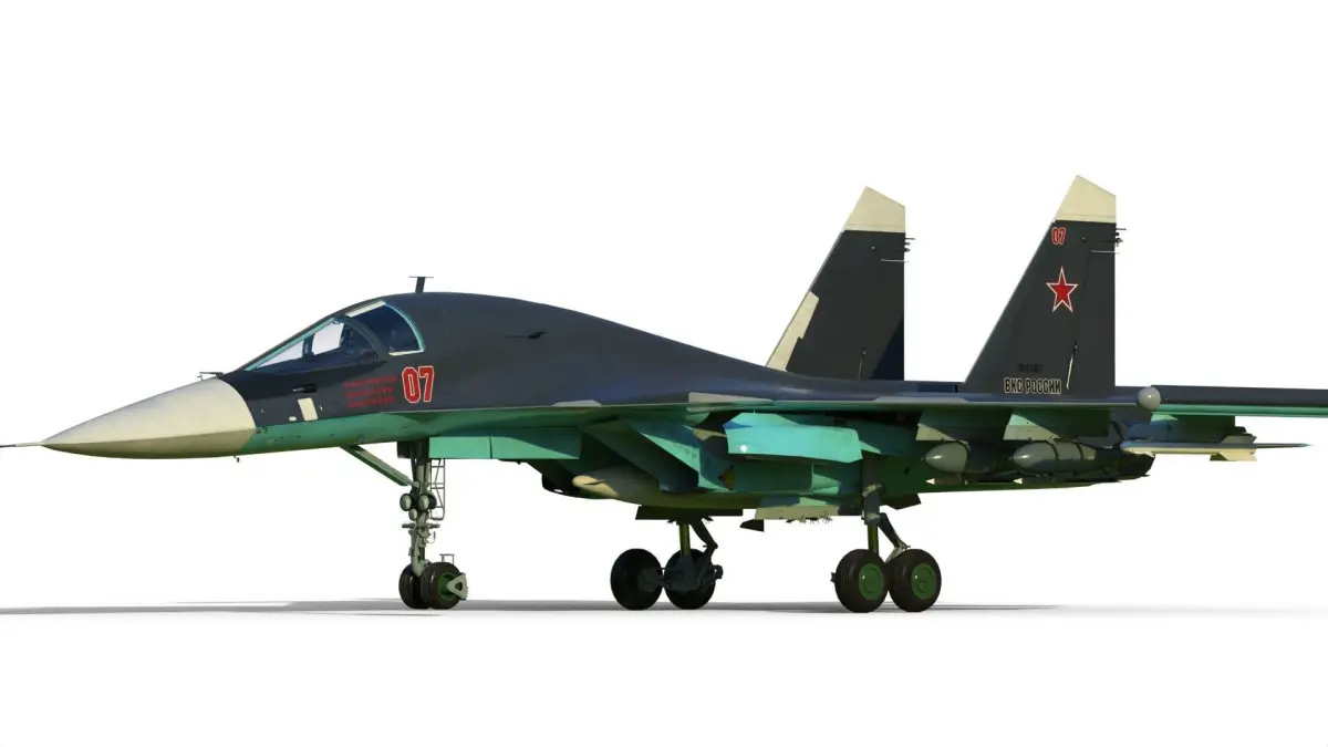 The Sukhoi Su-34 is a Russian twin-engine, twin-seat, all-weather supersonic medium-range fighter-bomber/strike aircraft.It first flew in 1990, and it entered service in 2014 with the Russian Air Force.Based on the Sukhoi Su-27 Flanker air superiority fighter, the Su-34 has an armoured cockpit for side-by-side seating of its two-person crew. The Su-34 is designed primarily for tactical deployment against ground and naval targets