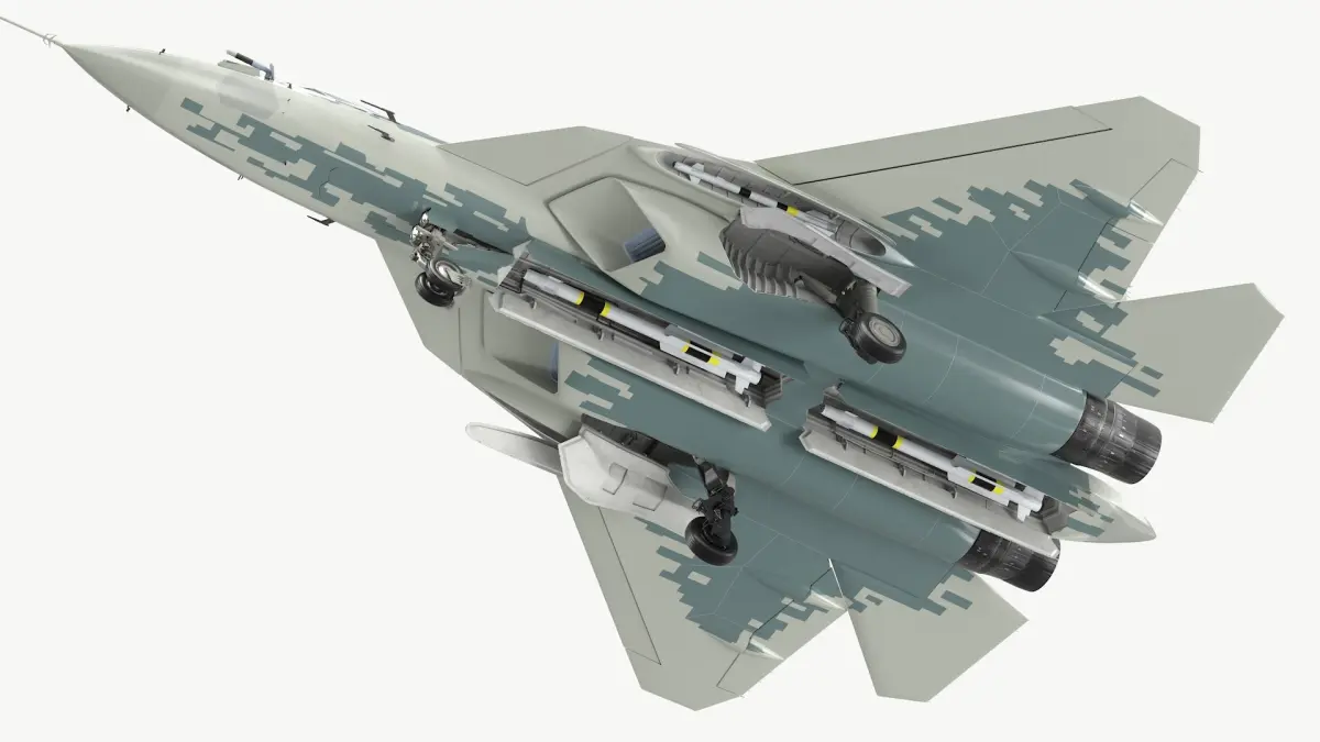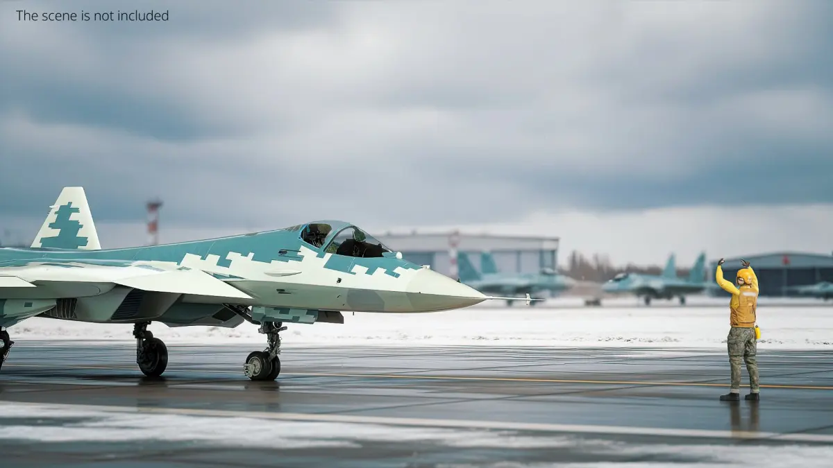 Su57 Stealth Jet Fighter Vehicle Grey Camo is a 3d model of an advanced aircraft, showcasing sleek and modern stealth technology used in contemporary military aviation.