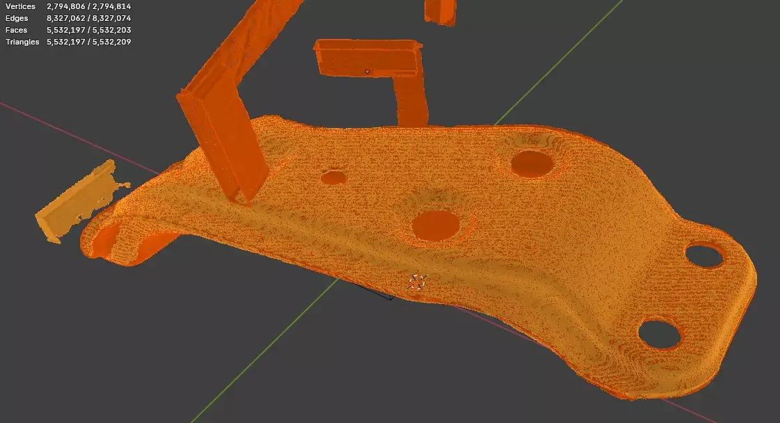 Scanned at 0.2mm. 2,794,814 vertices, 5,532,209 faces. All fixtures and bolt locations identified. Scale Block is left in the scans for users verification. Scale Block is 20mm x 60.7mm x 9mm.