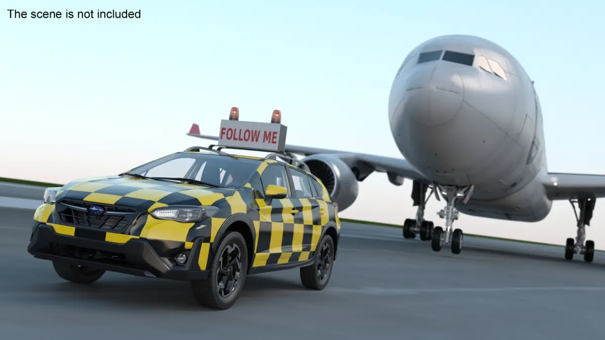 Subaru Follow Me Car Accompanies an Airbus A330-200 Airliner is a high quality, photo real 3d model that will enhance detail and realism to any of your rendering projects. The model has a fully textured, detailed design that allows for close-up renders, and was originally modeled in 3ds Max 2020 and rendered with V-Ray. Renders have no postprocessing!