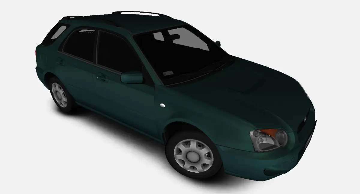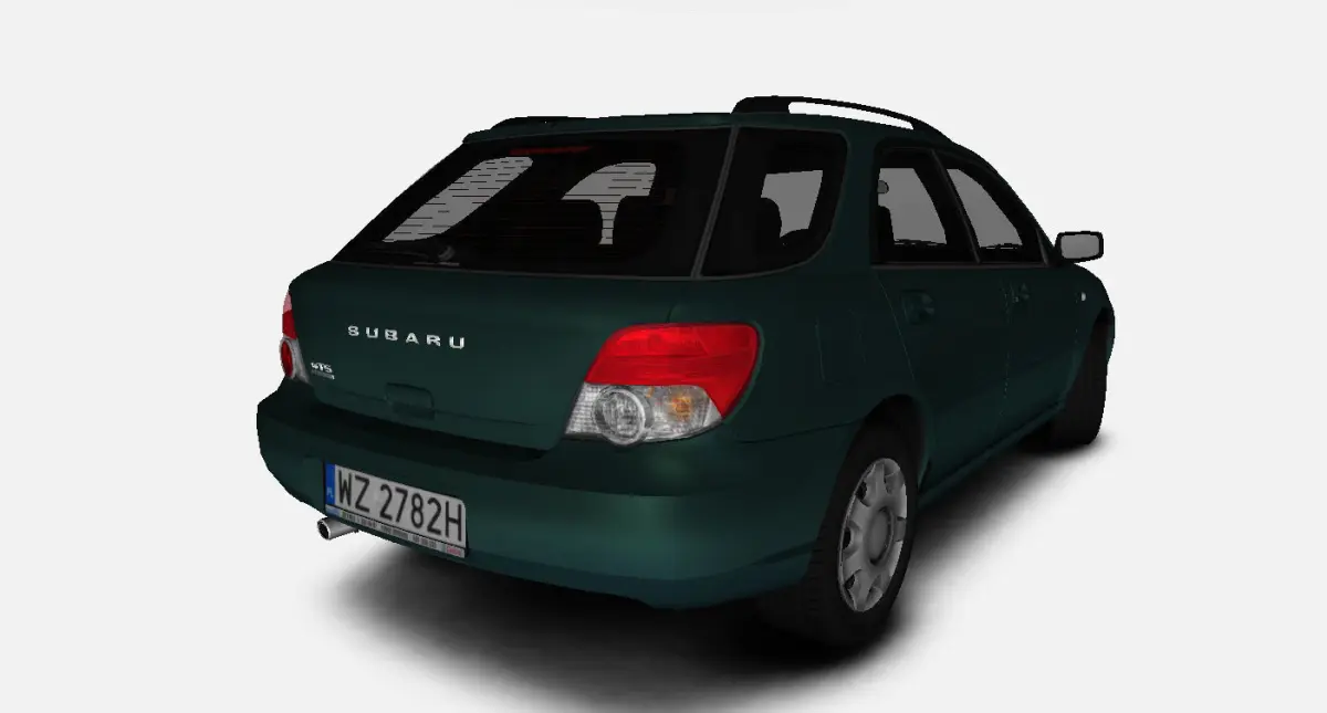 A low-trim GGB Impreza Wagon 1.6TS. When sedan for Europe and America was only with arrows bodyshell, wagoncan be discovered even with basic front bumper. 1.6TS offers modern chrome tail lights, big smooth trunk lid anda 1.6 petrol engine. Also, there's original R15 steel wheels with detachable hubcaps and special-made forthis model Toyo Proxes CF2 tire. Included most common original accessories.