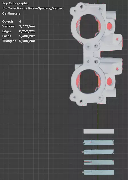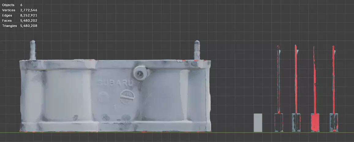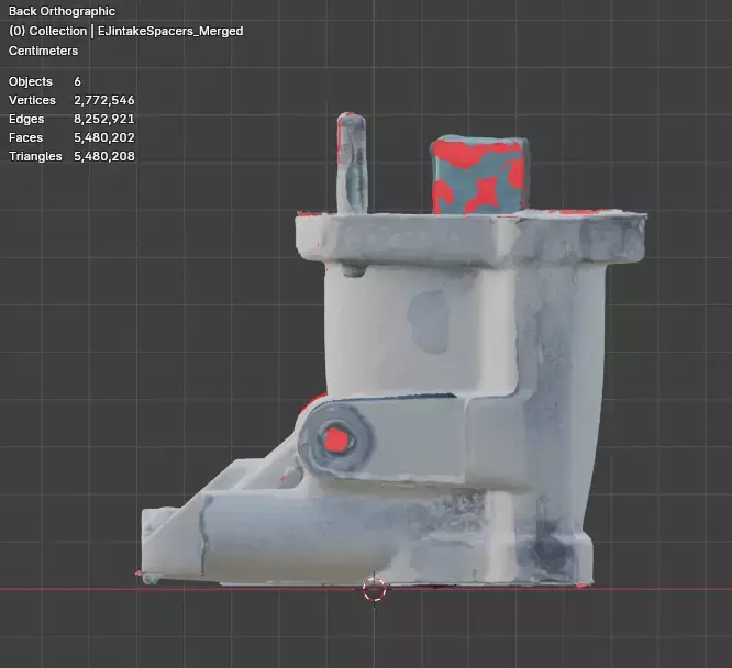 Scanned at 0.2mm. 2,772,538 vertices, 5,480,196 faces. All fixtures and bolt locations identified. Scale Block is left in the scans for users verification. Scale Block is 20mm x 60.7mm x 9mm.
