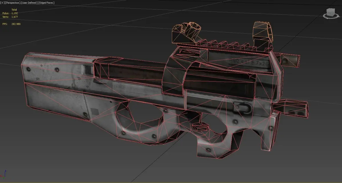 Low poly 3d model of FN Project 1990 submachine gun bullpup personal defense weapon