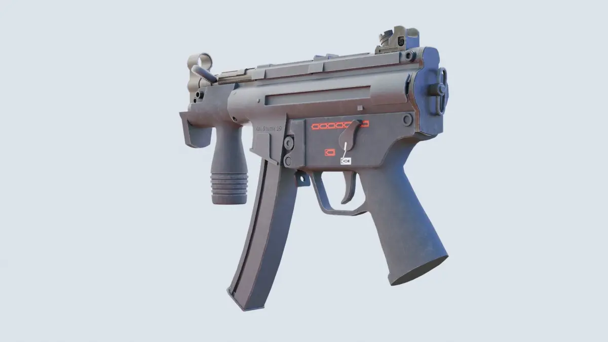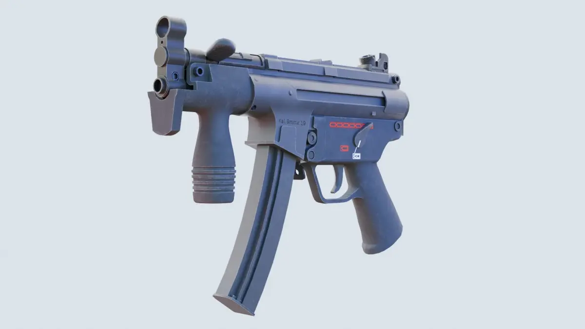 The MP-5K compact submachine gun was developed by the German company Heckler-Koh based on their popular MP-5 submachine gun. The MP-5K is designed specifically as a concealed carry weapon suitable for close combat, and provides short-range firepower. The MP-5K is widely used by various anti-terrorist organizations around the world, as well as by various security services for high-ranking officials.