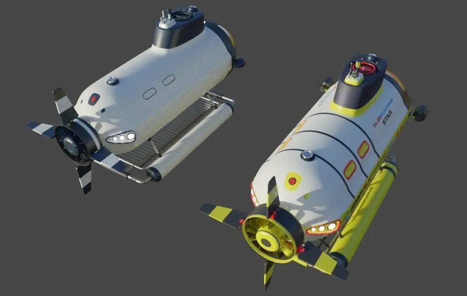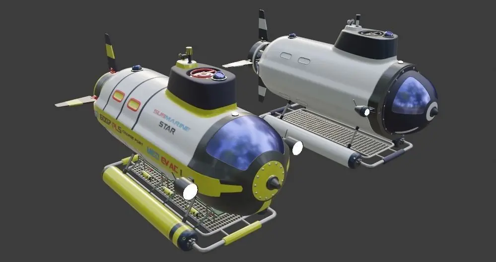 This 3d model create in blender,this is an exploratory & emergency submarine,it contains tow different pilot cockpits to give you a kind of choice.this model contains texture only in decorative texts,but the rest of the submarine does not conain texture.
