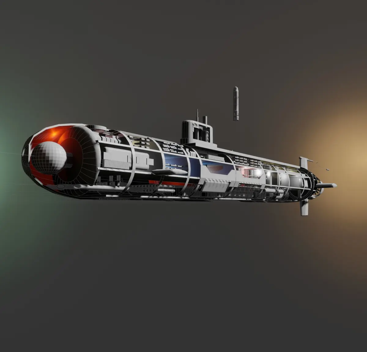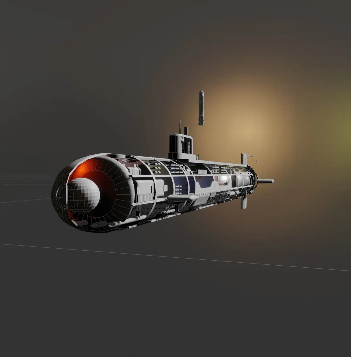 I cutaway design of a submarine (no particular class of submarine) just a prototype submarine naval design, feel free to re-design it or work on it and make it your prototype, no worries. it's fairly basic, no animations, no rigging, no UV's or no textures, just a simple sub design for someone to work on and use in media, games, art, designs, 3D programs, study's, presentations or even 3D printing, go for it.