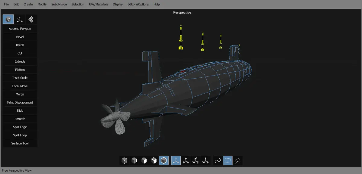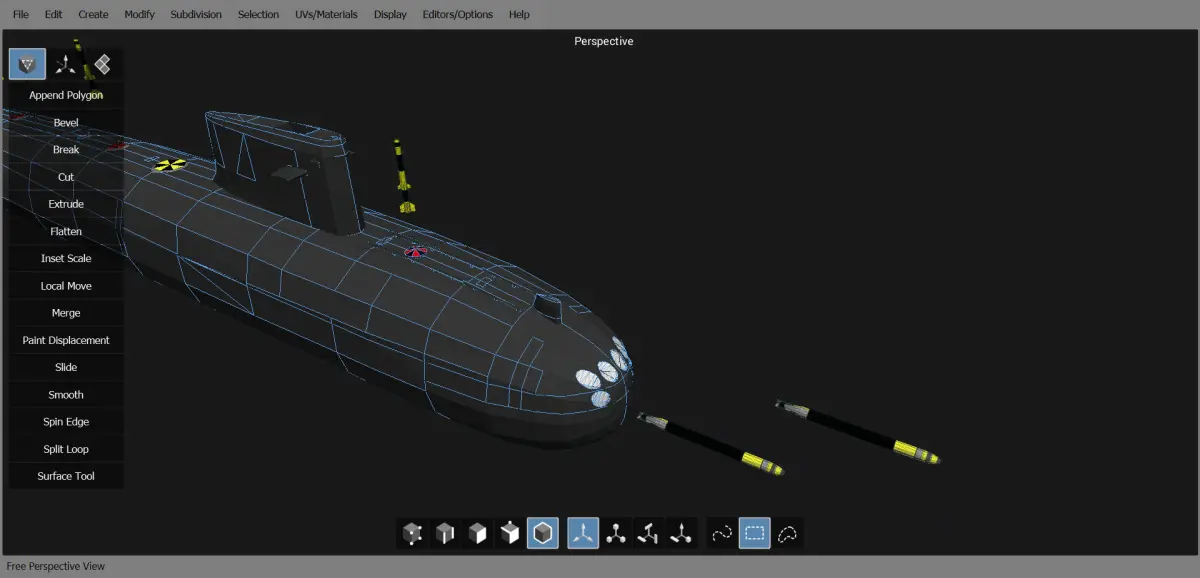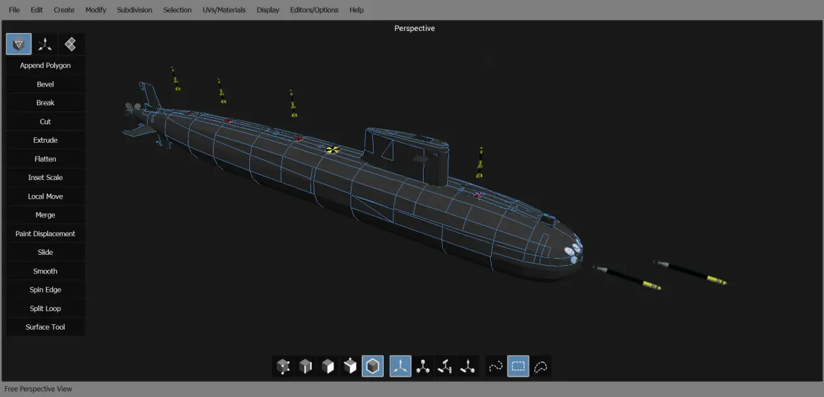 Submarine in computer program 3D model