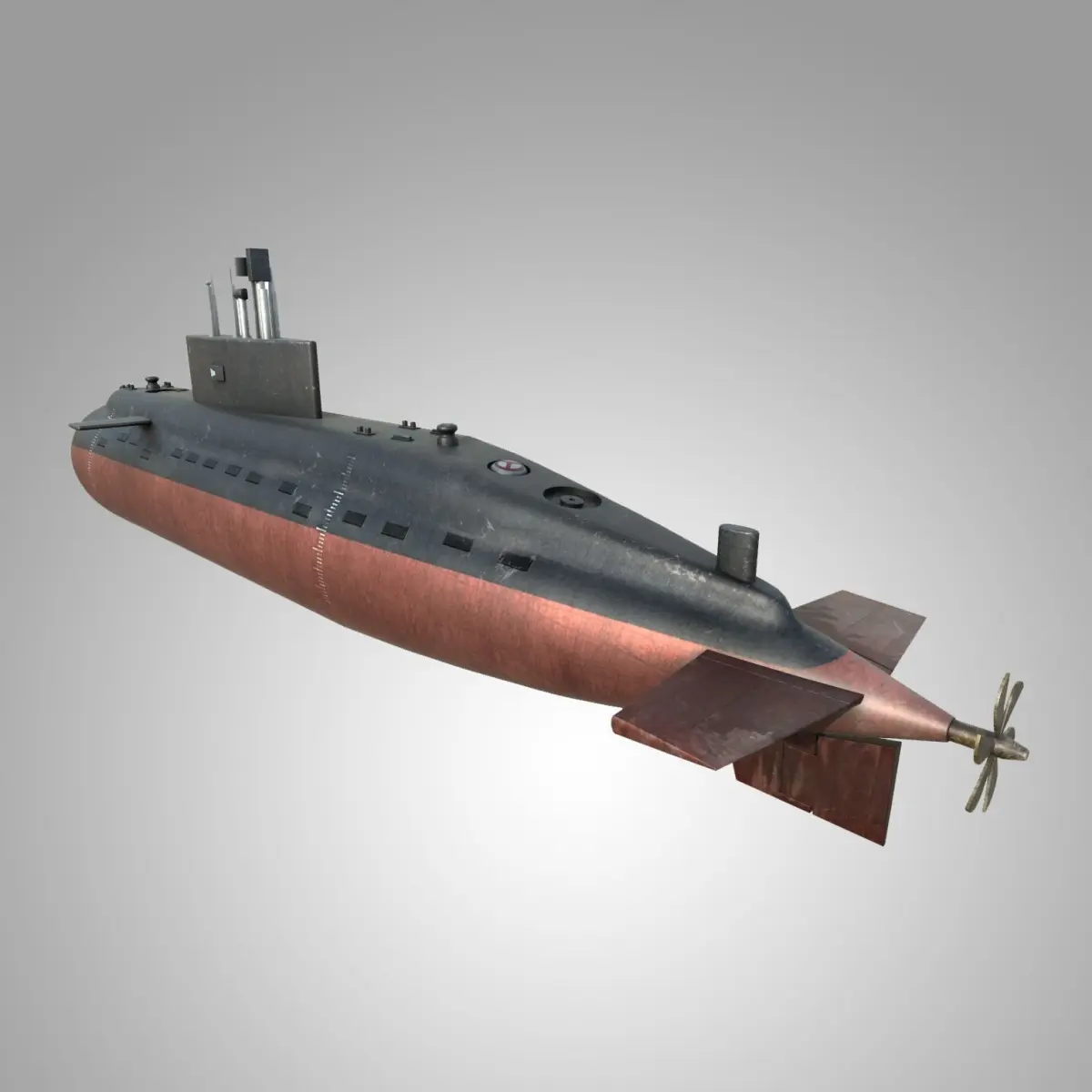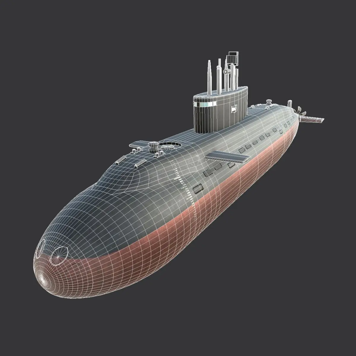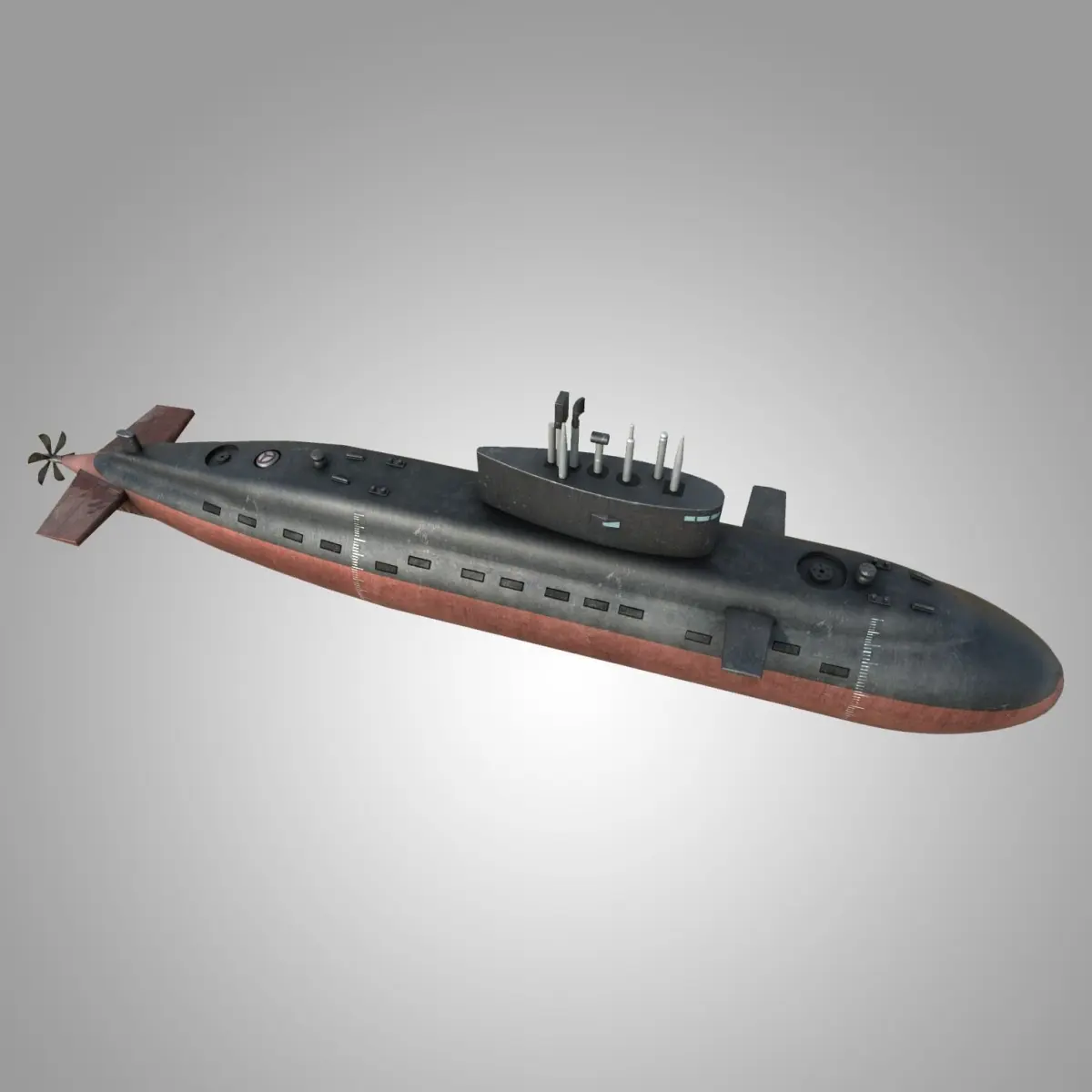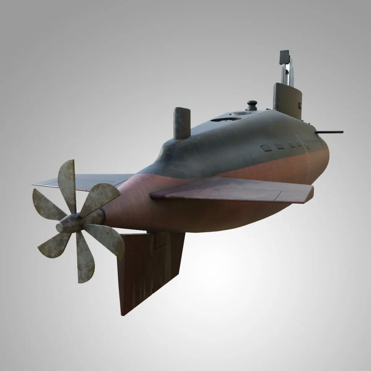 This is the model of a submarine styled after the Scorpene-class submarines of the Indian navy.