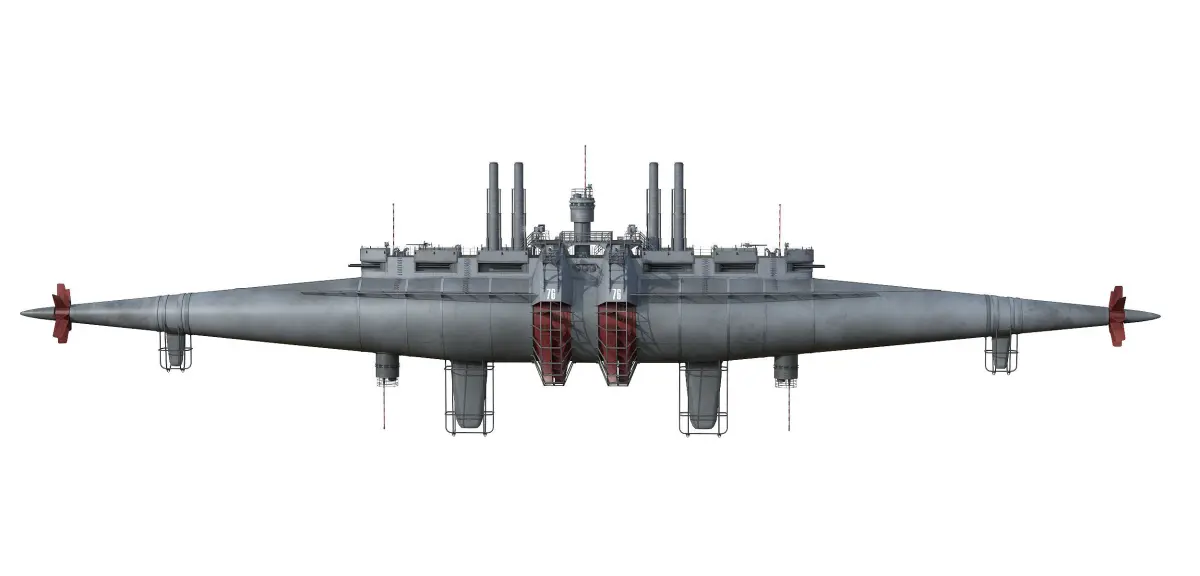 My fantasy on the cigar-shaped Winnans ships. What warships of the early 20th century might look like. This ship is a surface and underwater combat ship. The assembly includes both a surface and an underwater version with the pipes down and the captain’s cabin.