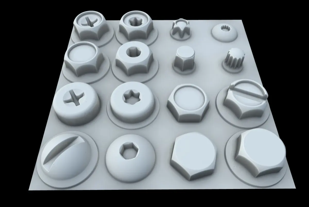 Parameters:Head Profile: Hex Allen Torx Tri_Square Round CheeseIndent: True FalseFlange: True FalseHead SizeHead HeightDrive Type: Plain Slot Phillips Allen Torx Tr_SquareDrive HeightDrive Size