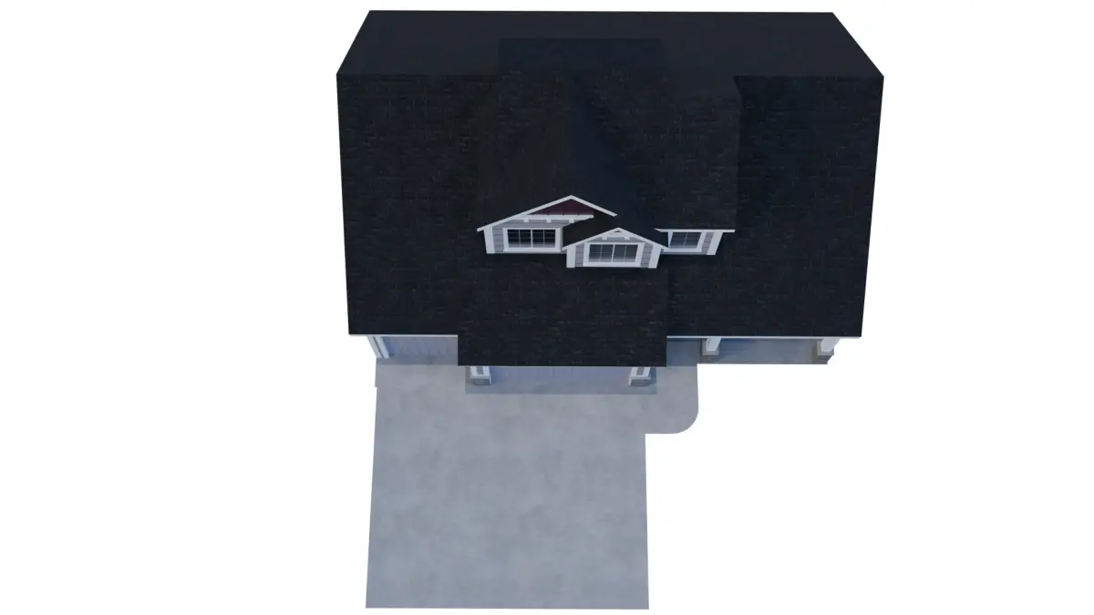 The model includes realistic architectural elements such as double-hung windows, a driveway. Exterior only.