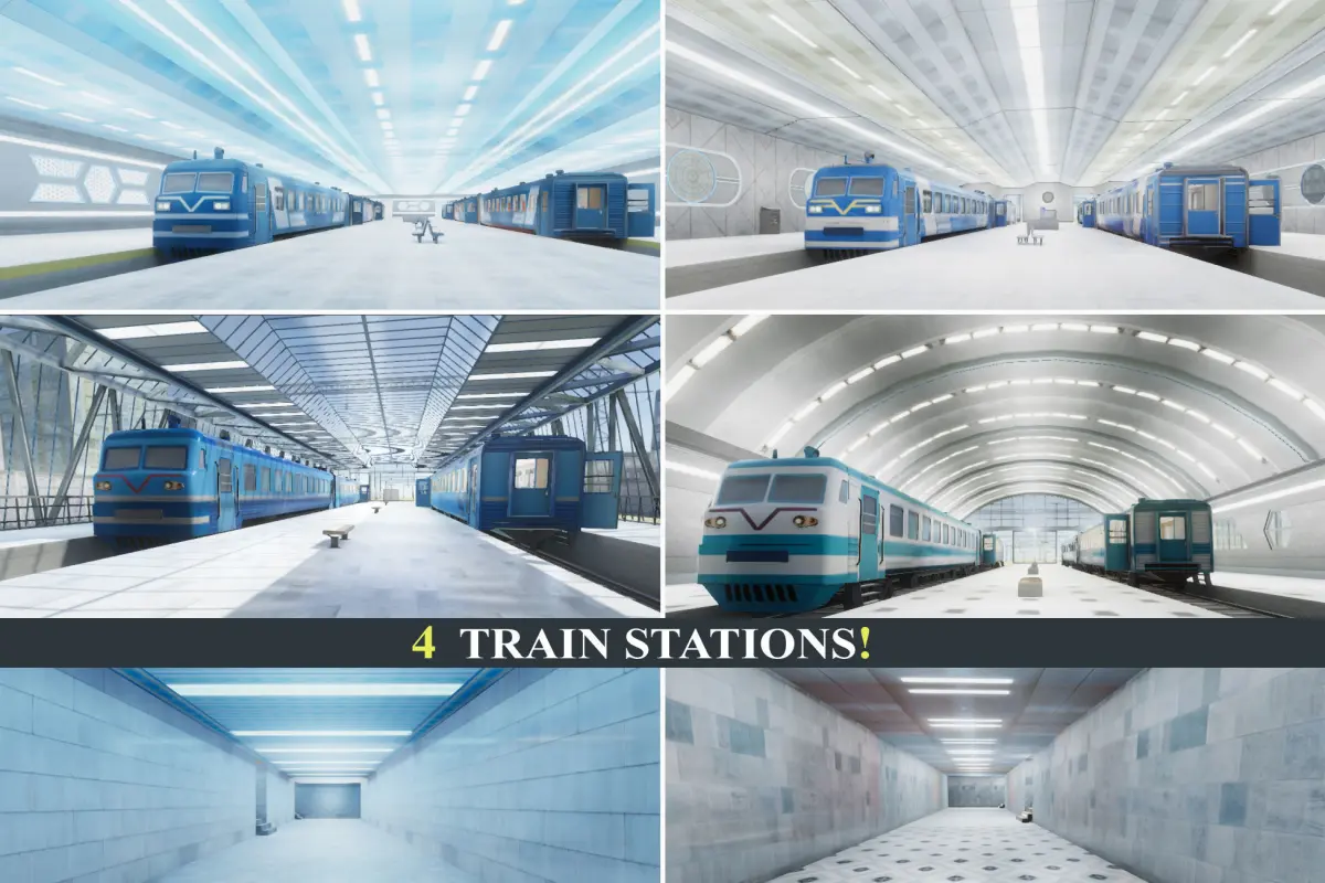 This package contains 6 Subway and 4 Train Stations (Modern) and low poly props with scenes for your game. Mobile friendly!