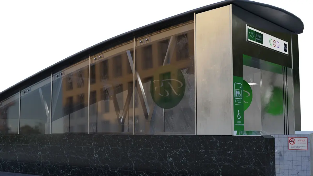 A Subway Entrance leading upto subway hall.The model represents a subway entrance which takes you to the subway hall or underpass, underground.Can be placed on sidewalks for access to the subway station.