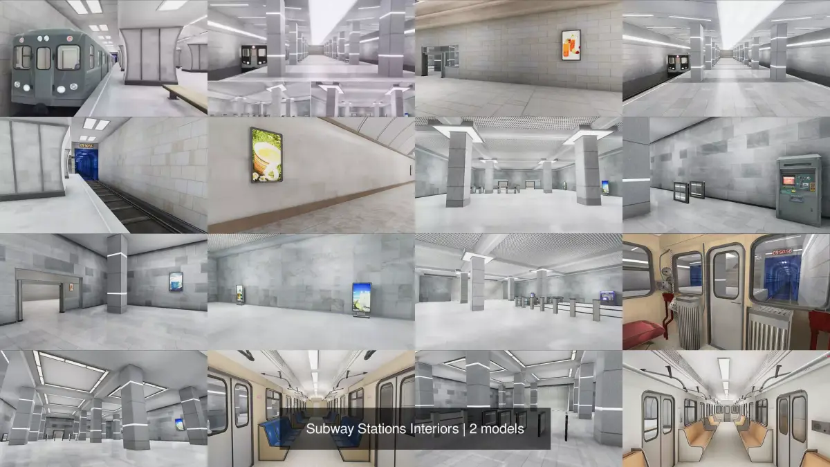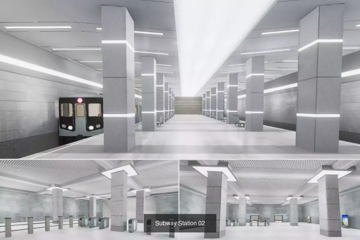 Subway Stations Interiors - 2 Clean and Modern Medium-Poly Scenes (Game Ready)