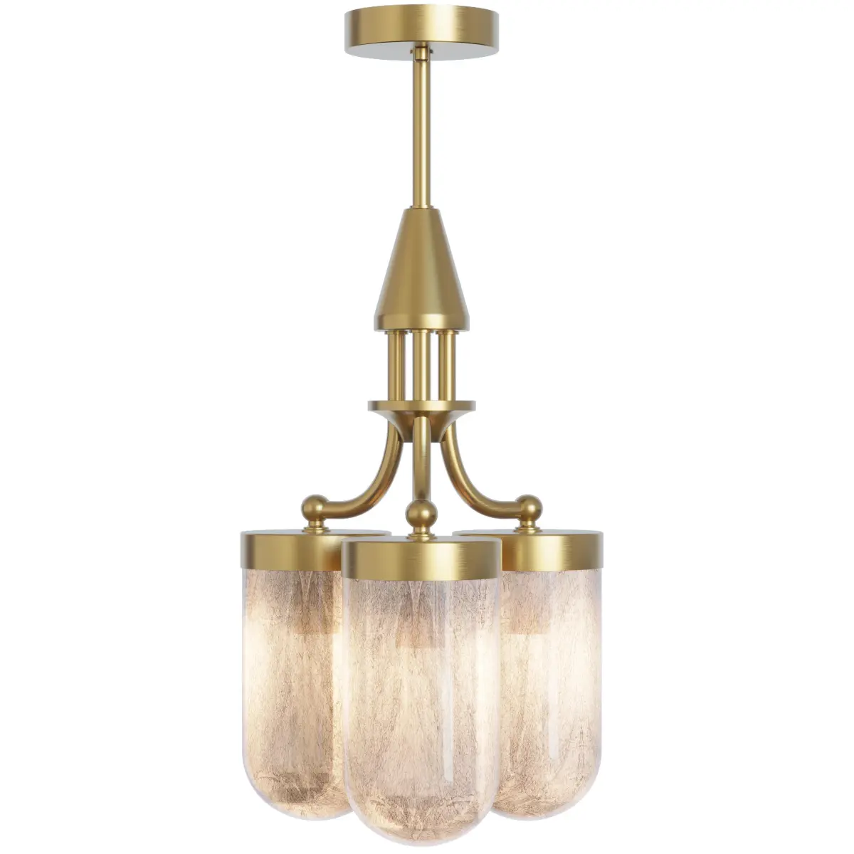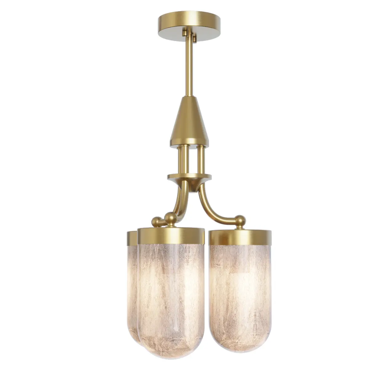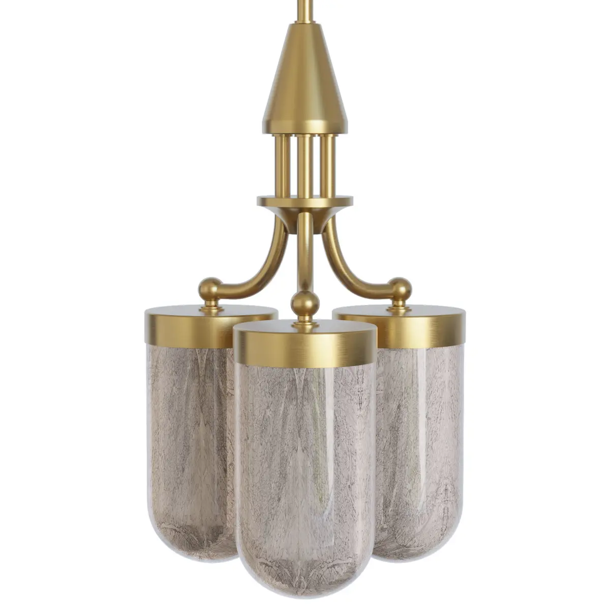 A chandelier for 3 lamps with hand blown glass which reminds of a marble color.Made of brass by Pikartlights in Lviv, Ukrainehttps://pikartlights.com/shop/liustry/liustra-art-31501/