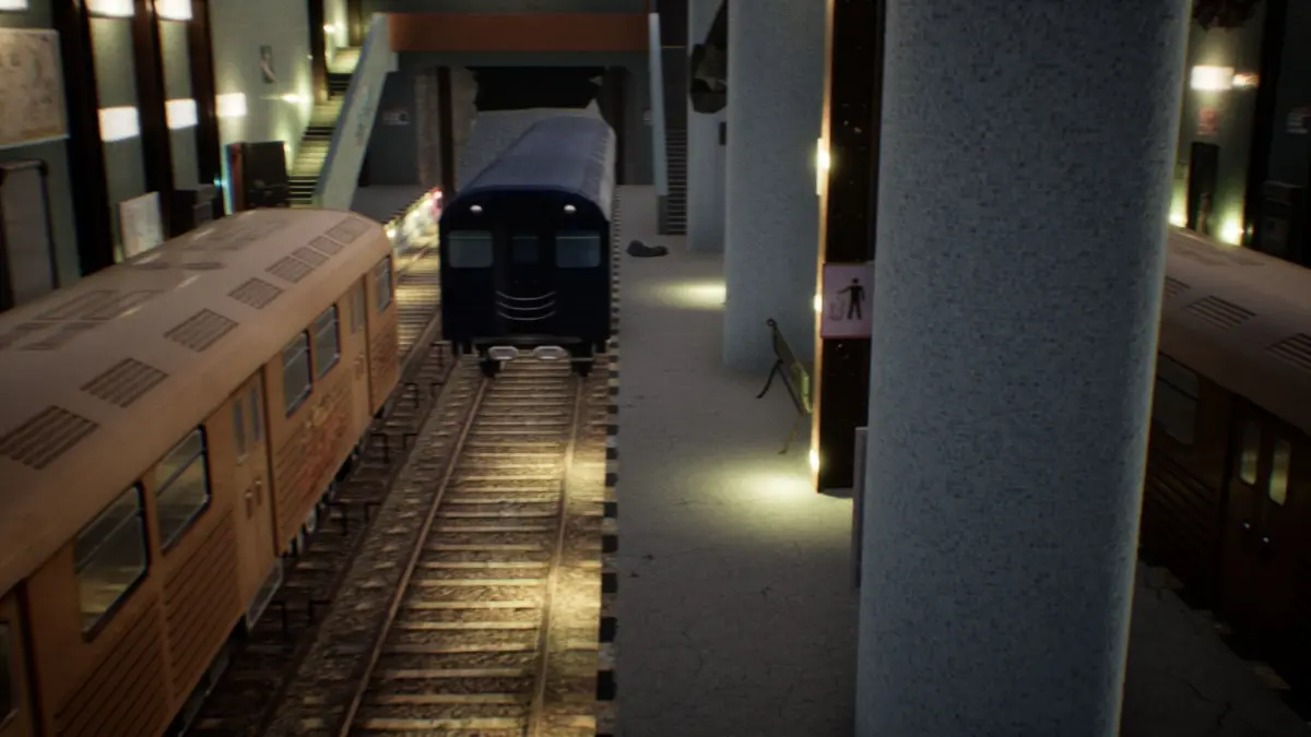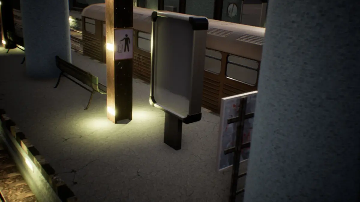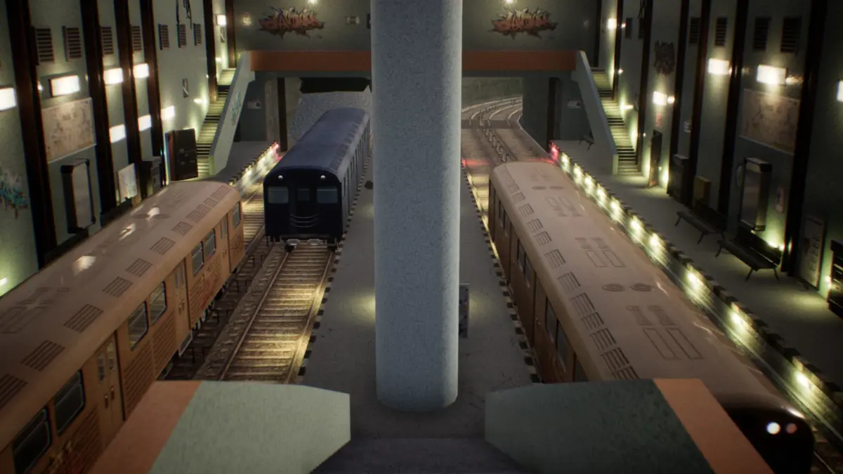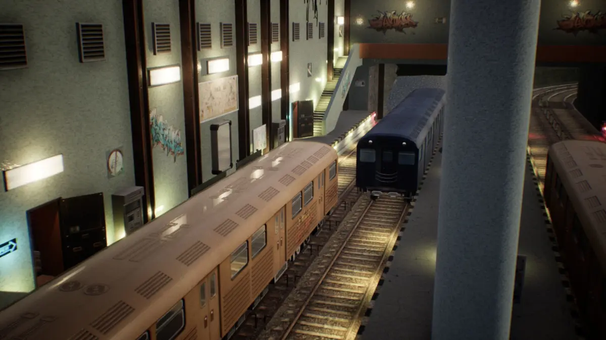 Subway UE4 model pack includes 34 models in total, including 2 types of trains, ticket machines, stairs, railways, 2 advertising panels, 3 graffities, 3 neon signs, and other props. There is one hallway on both sides of the main hall and two sets of stairs.