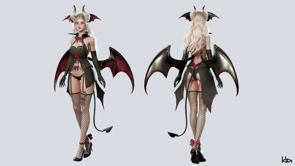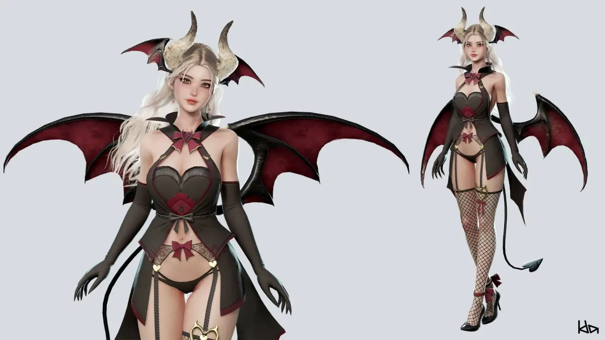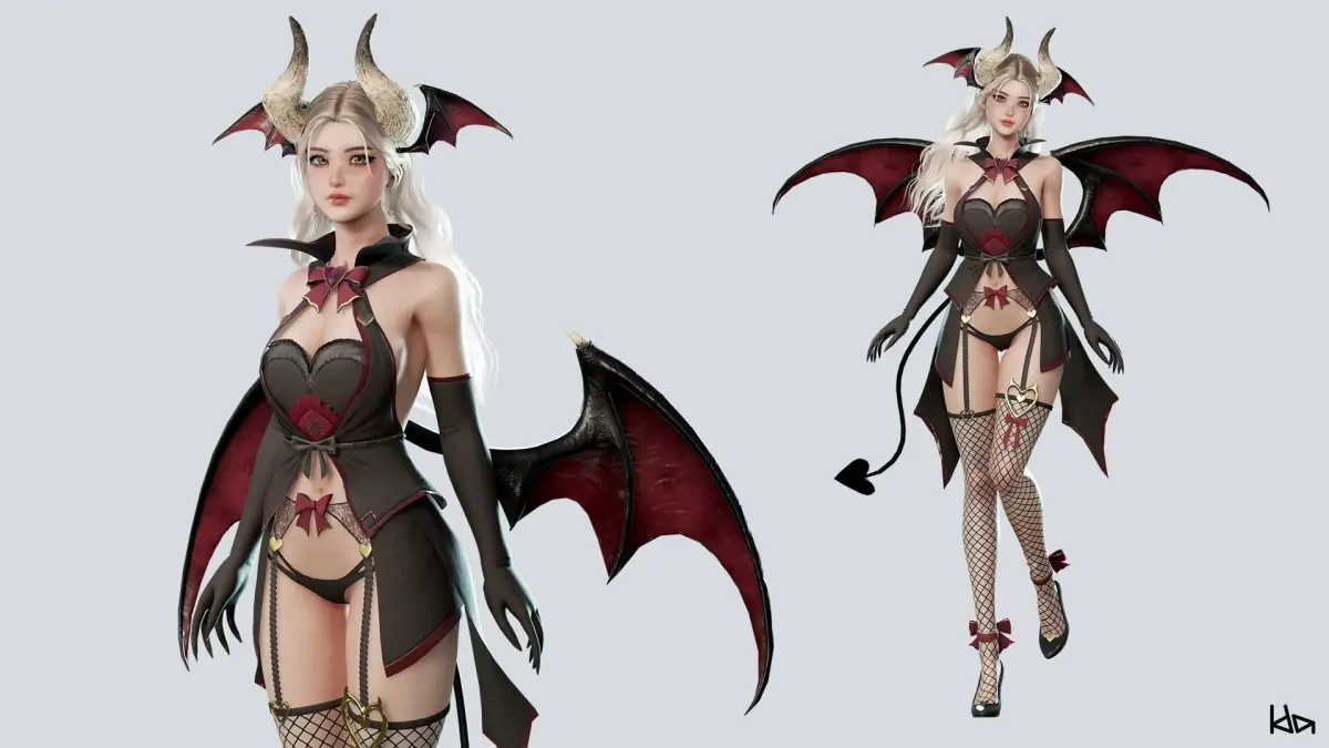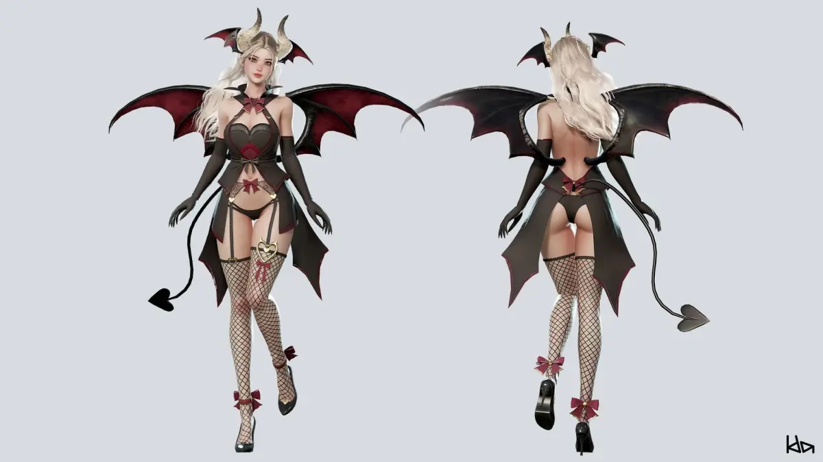 3d model of a cute Succubus Lauren. She has ARKit blendshapes, humanoid rig, many color options. She will be a perfect character for a fantasy or dress-up game.