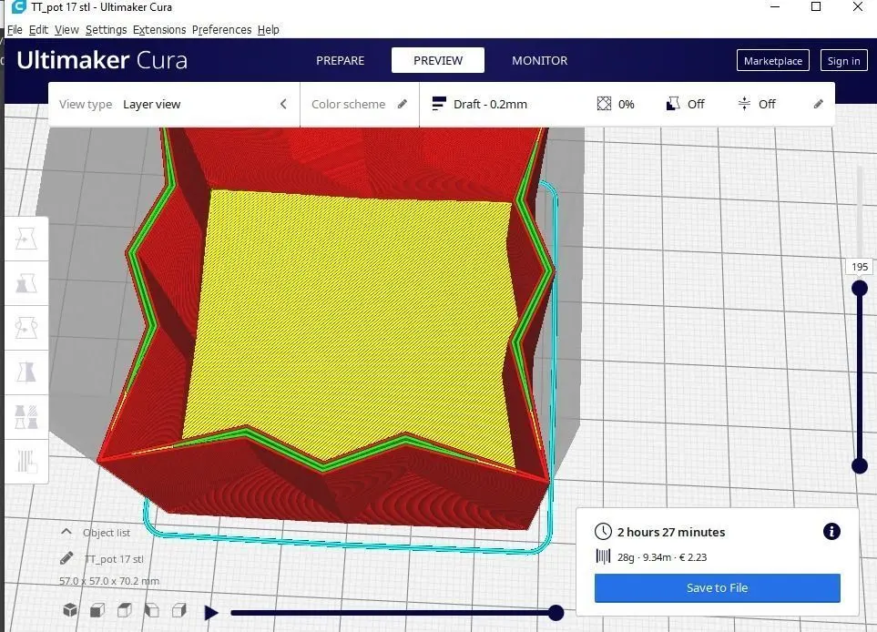 • No suport need (see preview images of Cura slicer simulation )