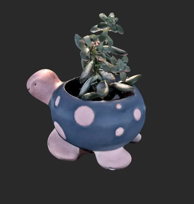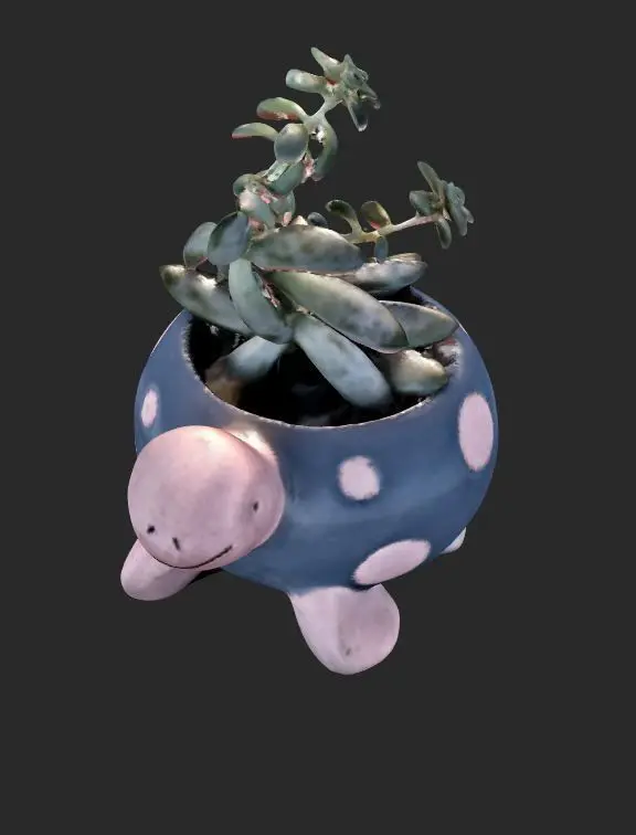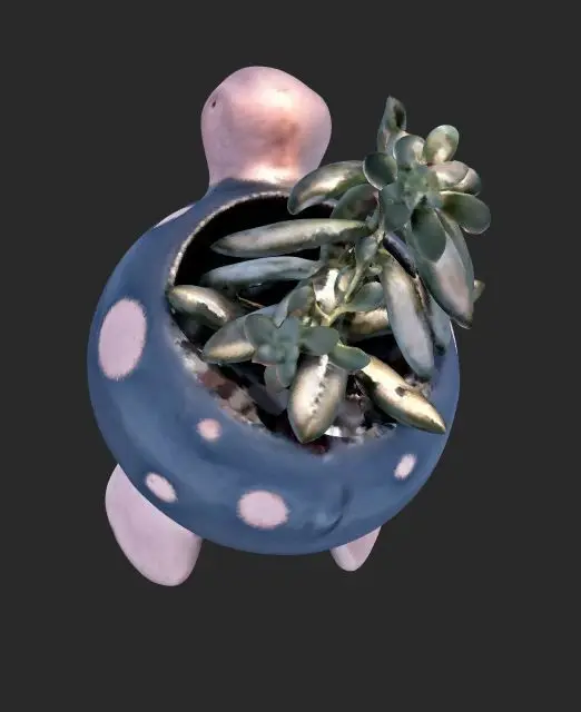 This is a scan of a succulent plant in a turtle pot. Great scan for use as an asset in art, games, or any other creative endeavor.There is a couple of rough spots on the bottom, as is common with 3D scans, but this is a perfect model for use as a background asset and/or interior or exterior decor.Face count is under 70,000, and is a great asset for geometry heavy projects.