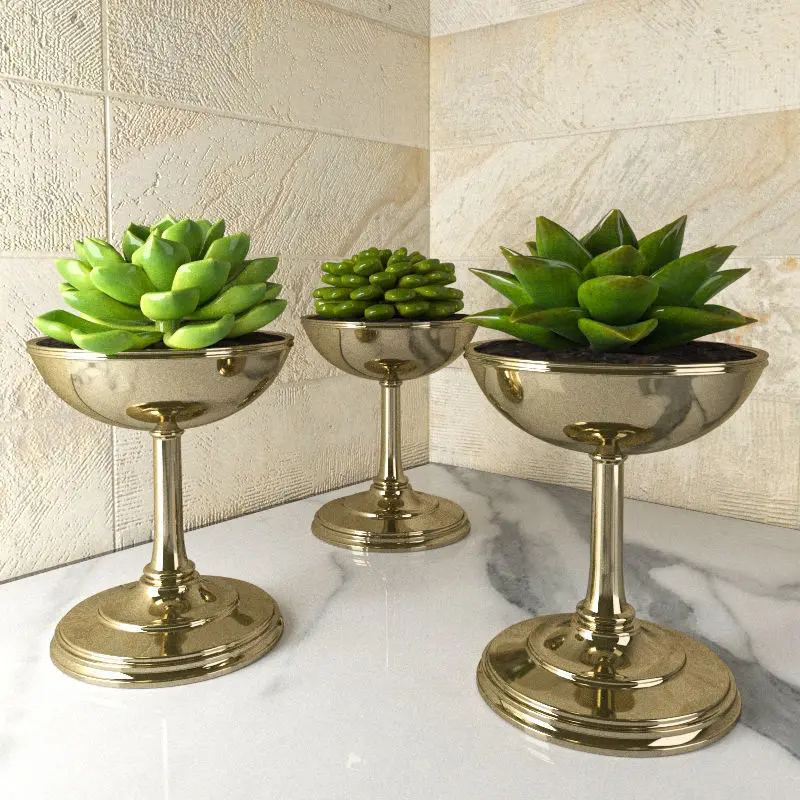 HomeCatalogSucculents three gold planters with on marble countertop 3D model