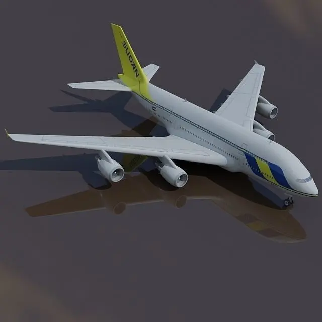 High detailed 3d model of Airbus A380.Textured as Sudan Airways with high-quality jpeg texture (2048 x 2048)Rendered with Vray.Vray settings included in .max version only.HDRI Map not included.