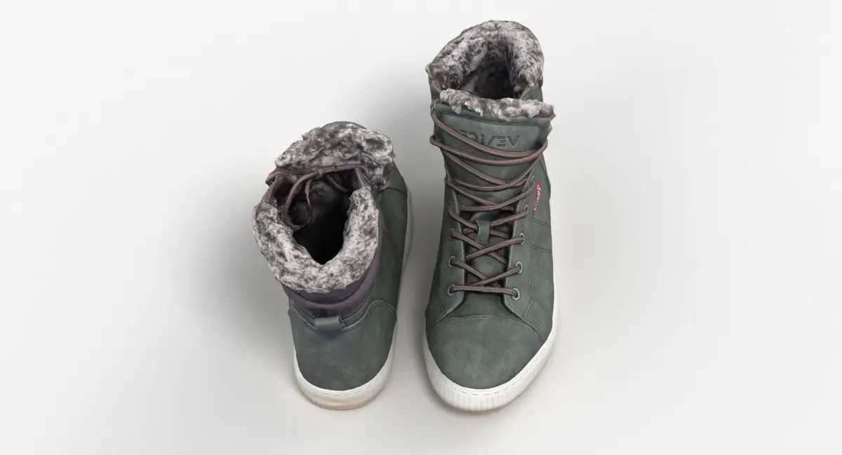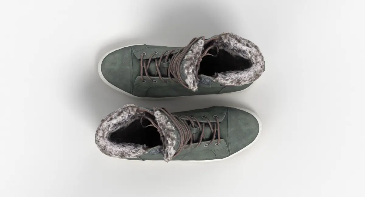 A DETAILED 3D MODEL OF SUEDE AND FUR SNOW BOOTS: