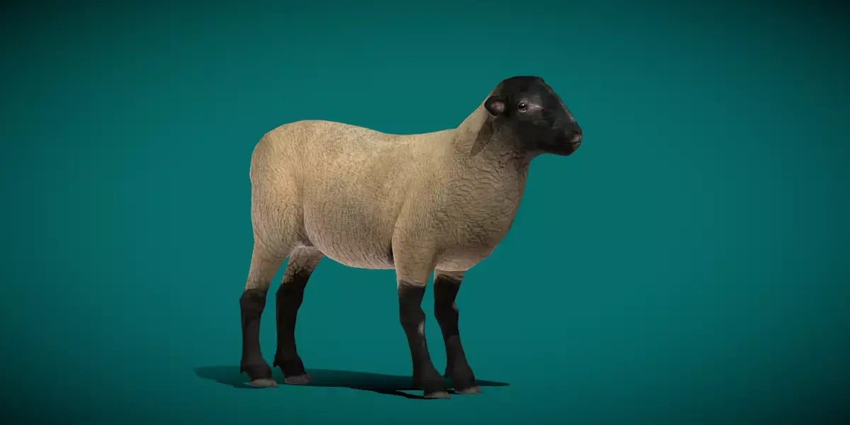 Suffolk Sheep (Domestic Sheep) Ovis aries Mammal Animal (Low poly)1 Draw Calls