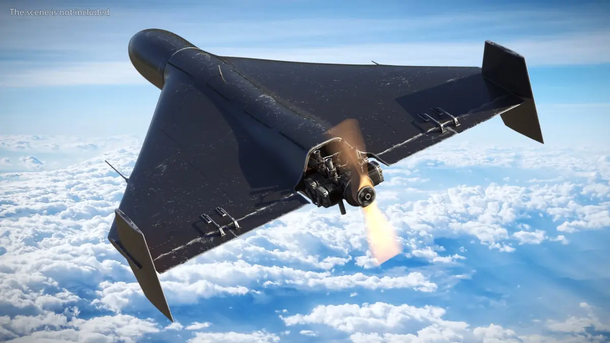 Suicide Drone Shahed 136 Black Rigged is a 3d model of an unmanned aerial vehicle designed for various applications, including surveillance and reconnaissance.