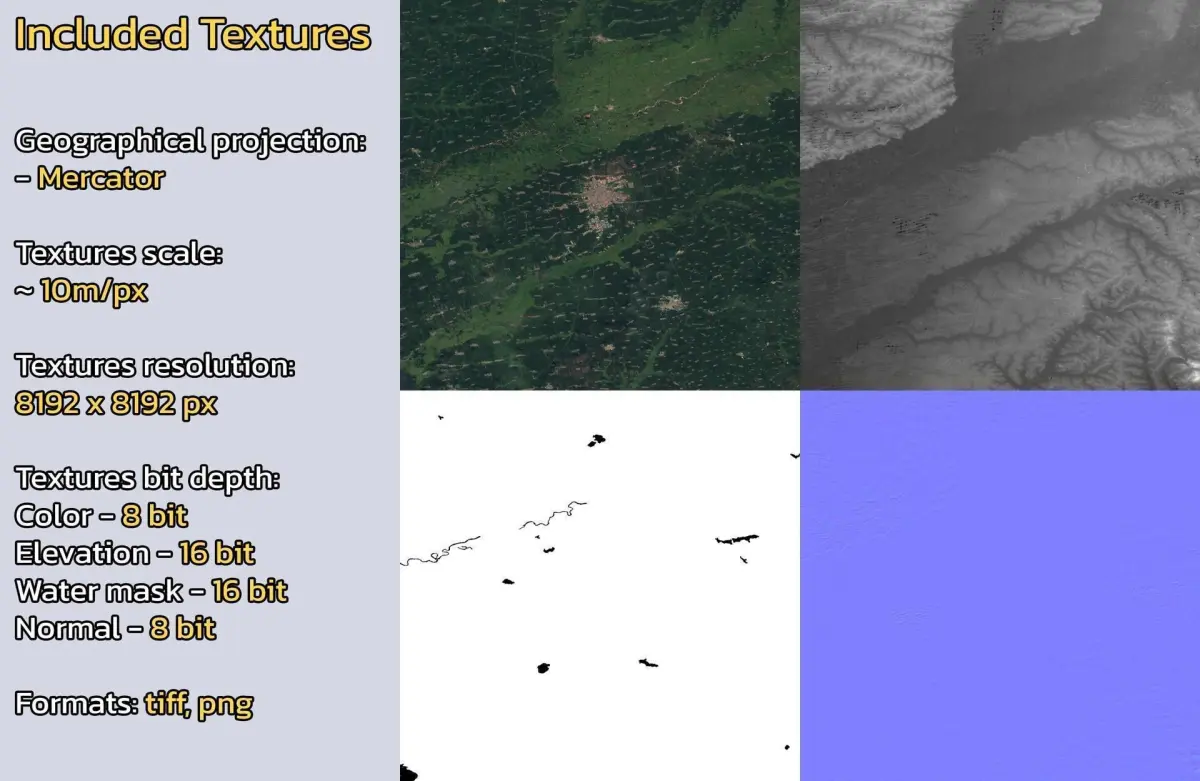 Warning: minor clouds/artifacts may be present on the diffuse color satellite texture due to the nature of the dataset. Check product images.