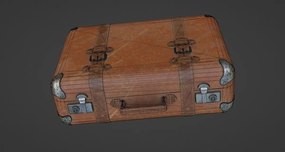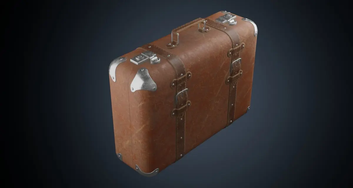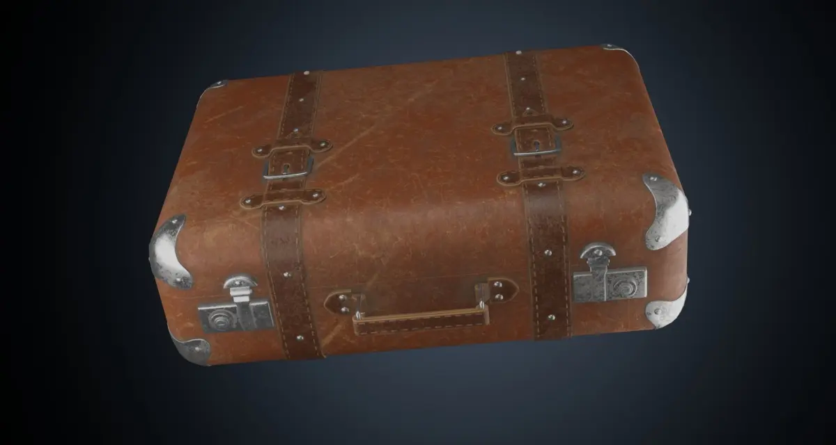 vintage leather suitcase model PBR low-poly. It has sets of 4k pbr map (3840 x 2160) including (Albedo, diffuse, normal, high,metallic, roughness ) in png.