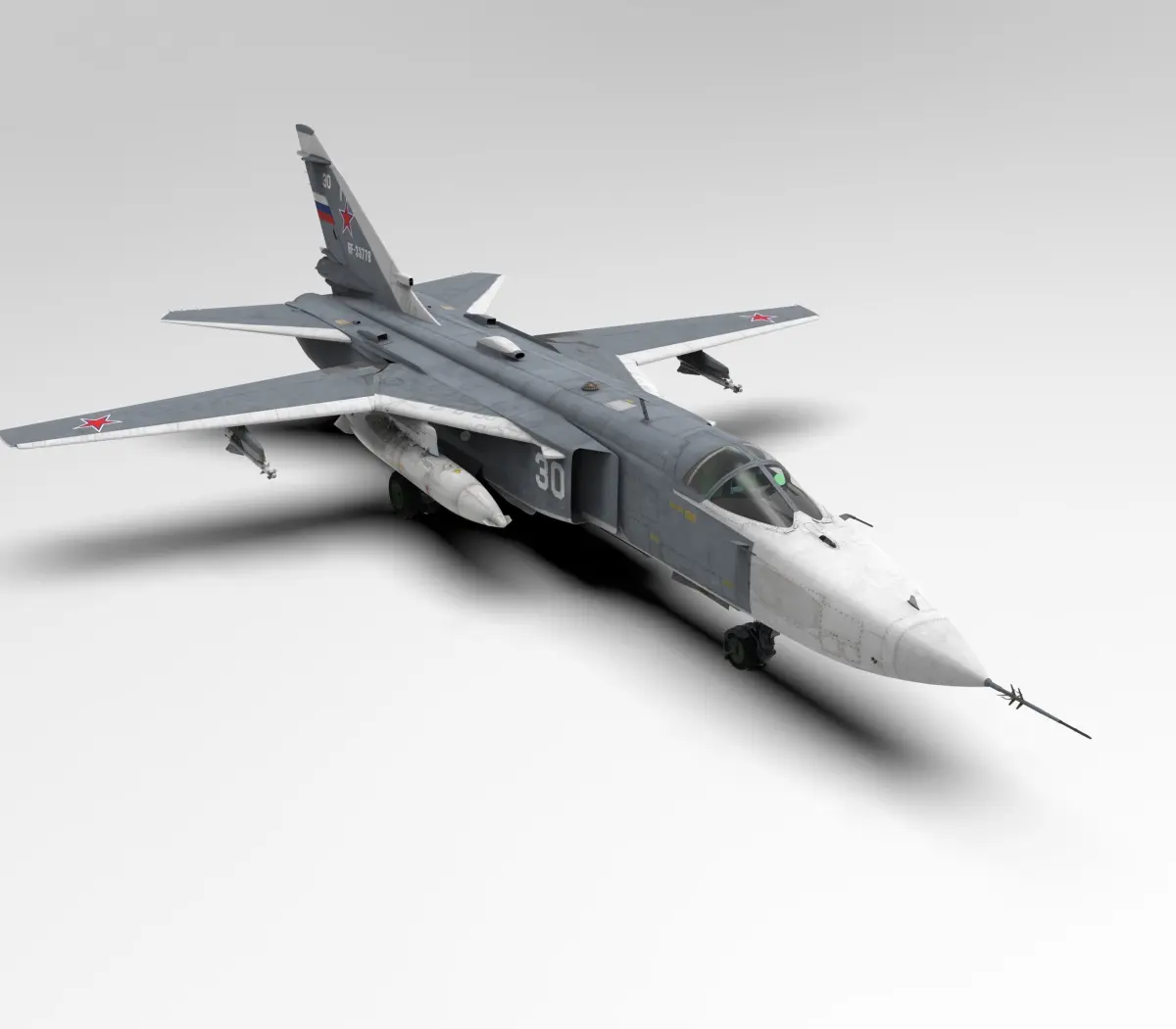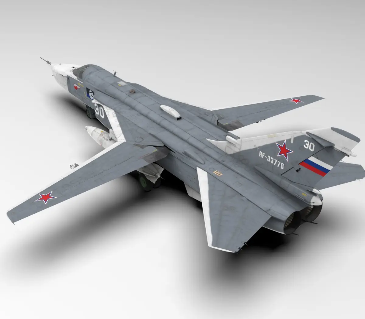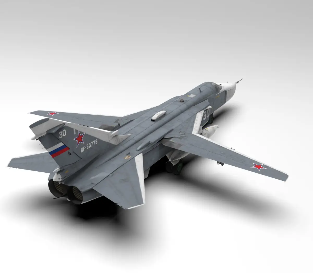 Realistic 3D model of the SU-24MR Fencer-E, the reconnaissance variant of the Soviet-era Su-24 tactical bomber. This model captures the distinctive design of the Fencer-E, featuring detailed exterior elements such as the variable-sweep wings, twin engines, and unique reconnaissance equipment. The cockpit is fully modeled, including panels and controls, providing a high level of realism for close-up renders and technical visualizations. Perfect for use in high-quality renders, animations, military simulations, VR/AR applications, or any project requiring an accurate and detailed model of this reconnaissance aircraft.