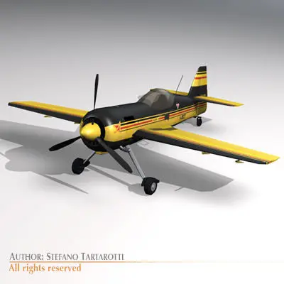 Only cinema4d R10 has materials and textures. The plane has side and ventral glass windows to have more visibility during aerobatic manouvres
